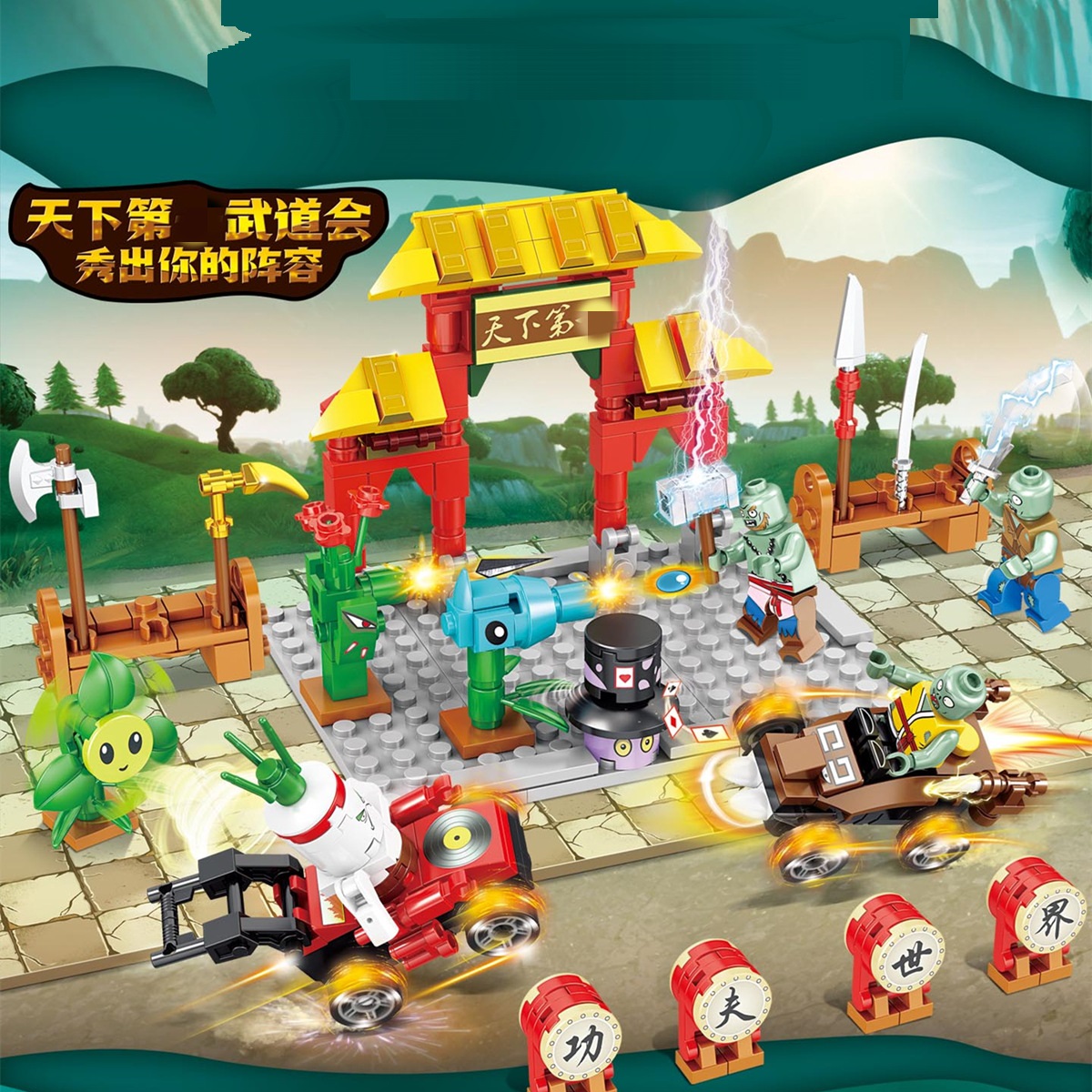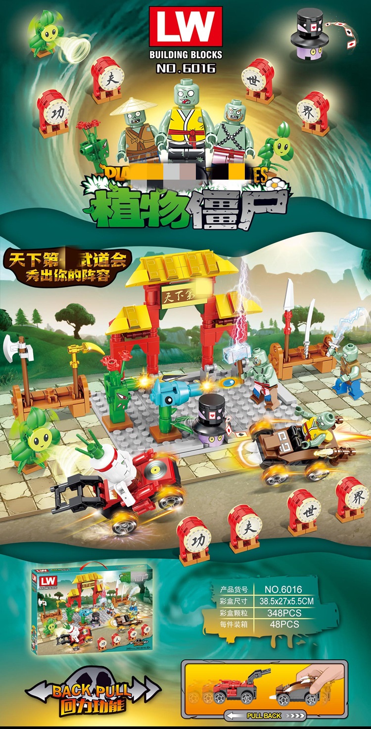 Đồ chơi lắp ghép xếp hình lắp ráp hoa quả đại chiến zoombie với 348 chi tiết: