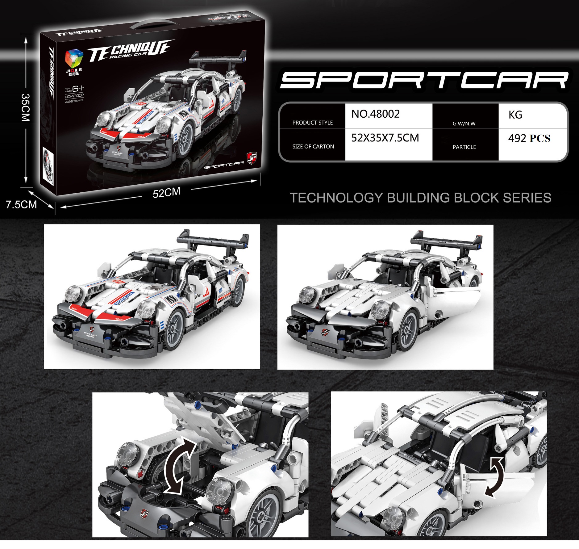 Đồ chơi lắp ghép xếp hình lắp ráp xe đua thể theo màu trắng với 492 chi tiết: