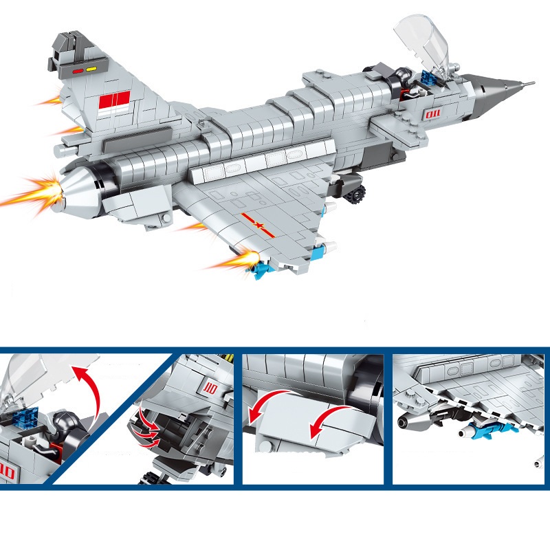 Đồ chơi lắp ghép xếp hình máy bay tiêm kích phản lực mẫu lớn cao cấp với 650 mảnh ghép:
