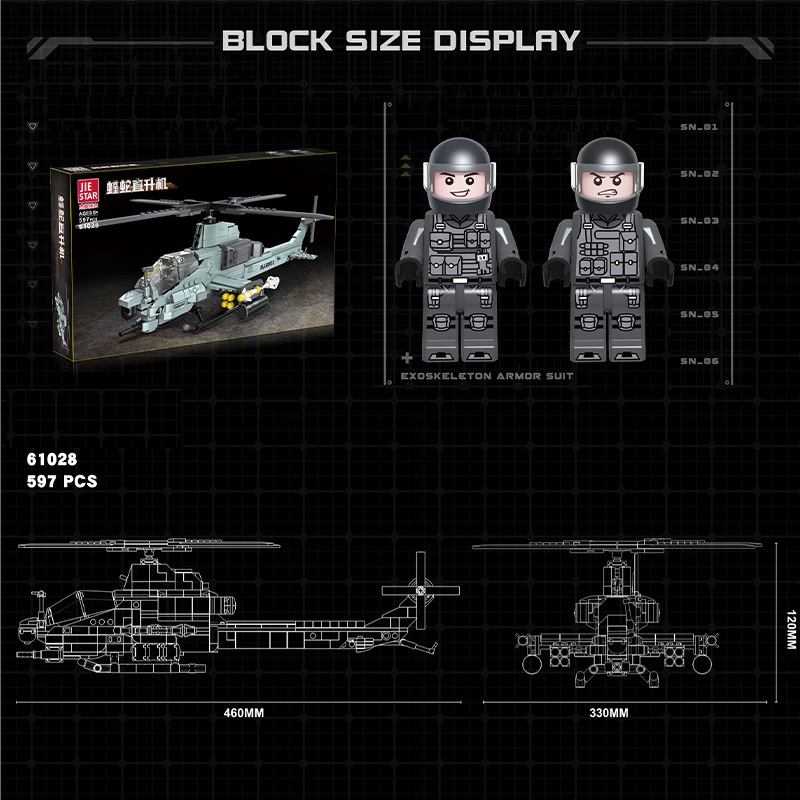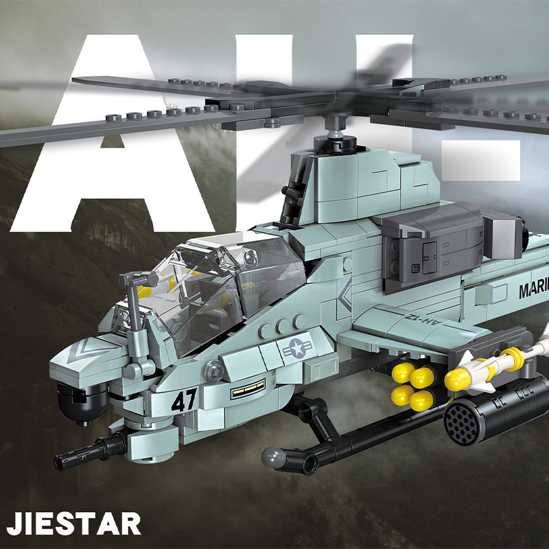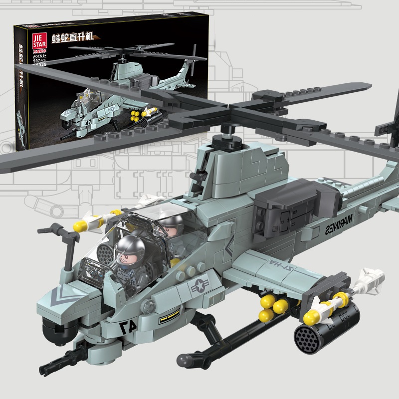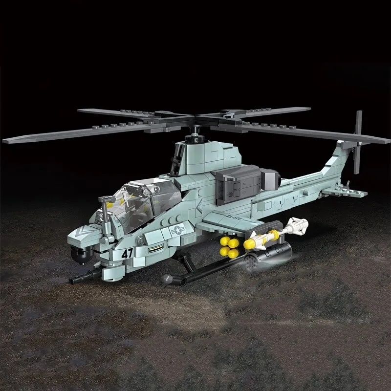 Đồ chơi lắp ghép xếp hình máy bay trực thăng vũ trang với 597 mảnh ghép: