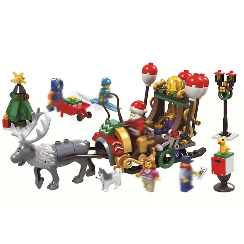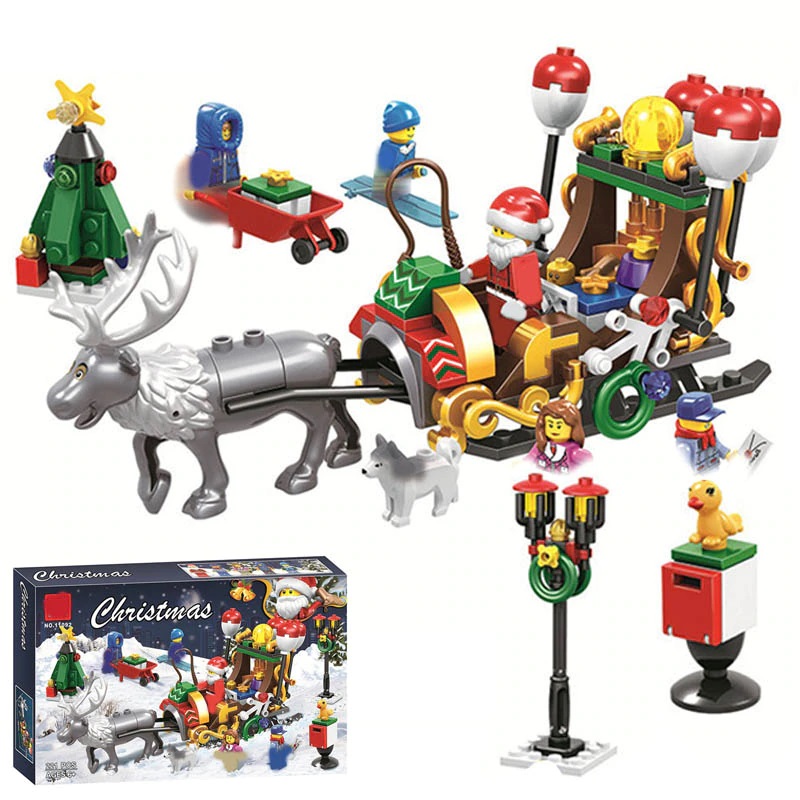 Đồ chơi lắp ghép xếp hình ông già noel cưỡi xe tuần lộc phát quà với 221 mảnh ghép: