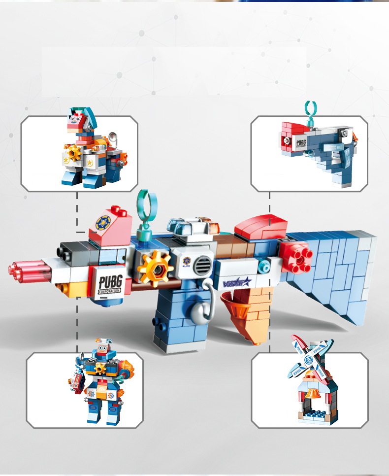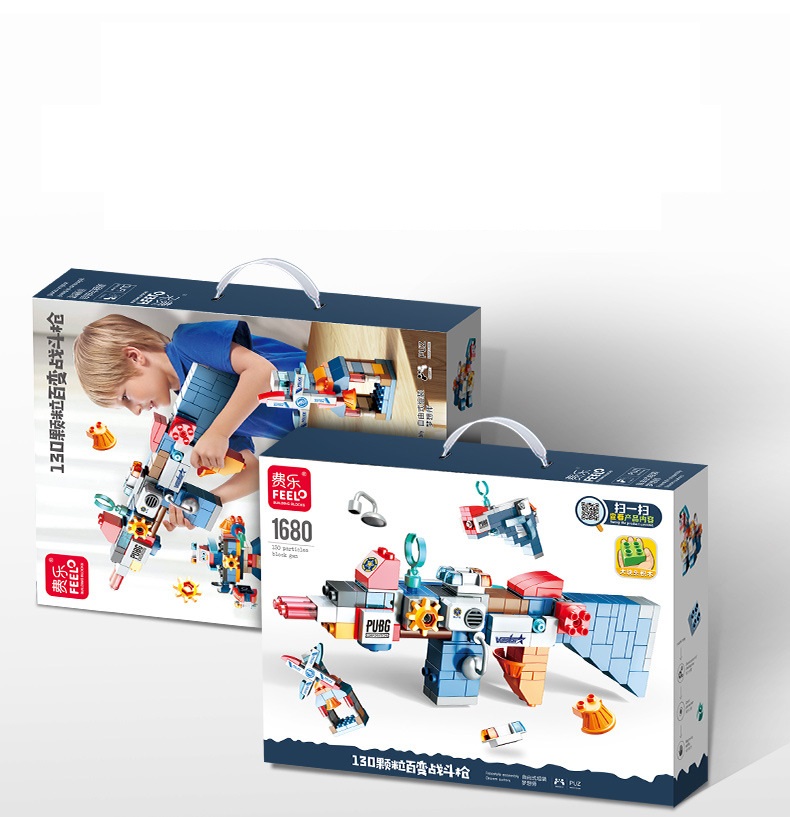 - Sau khi thử thách với các hình nhỏ, bé có thể lắp ráp lại thành mẫu súng đồ chơi cầm tay cực ngầu