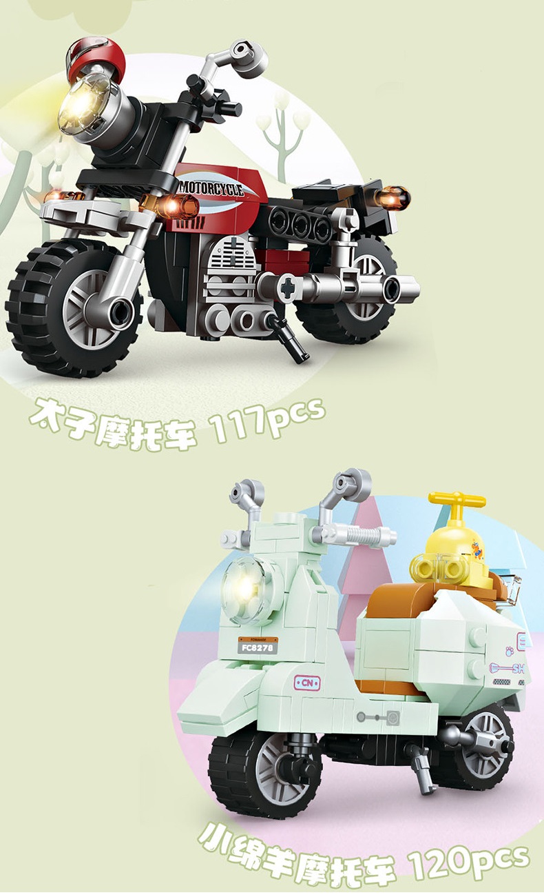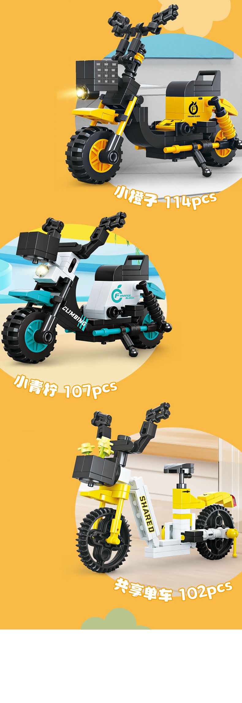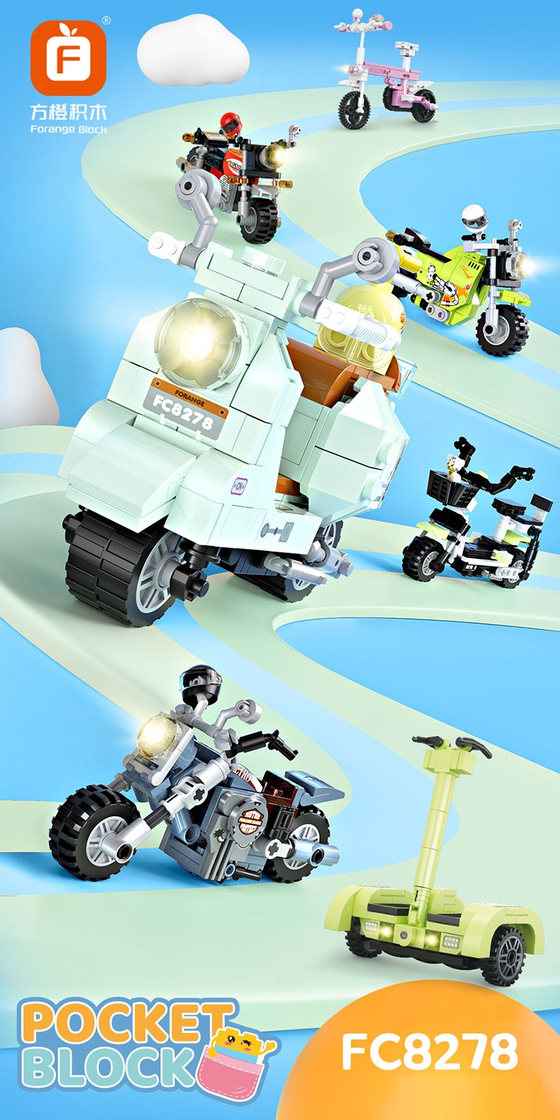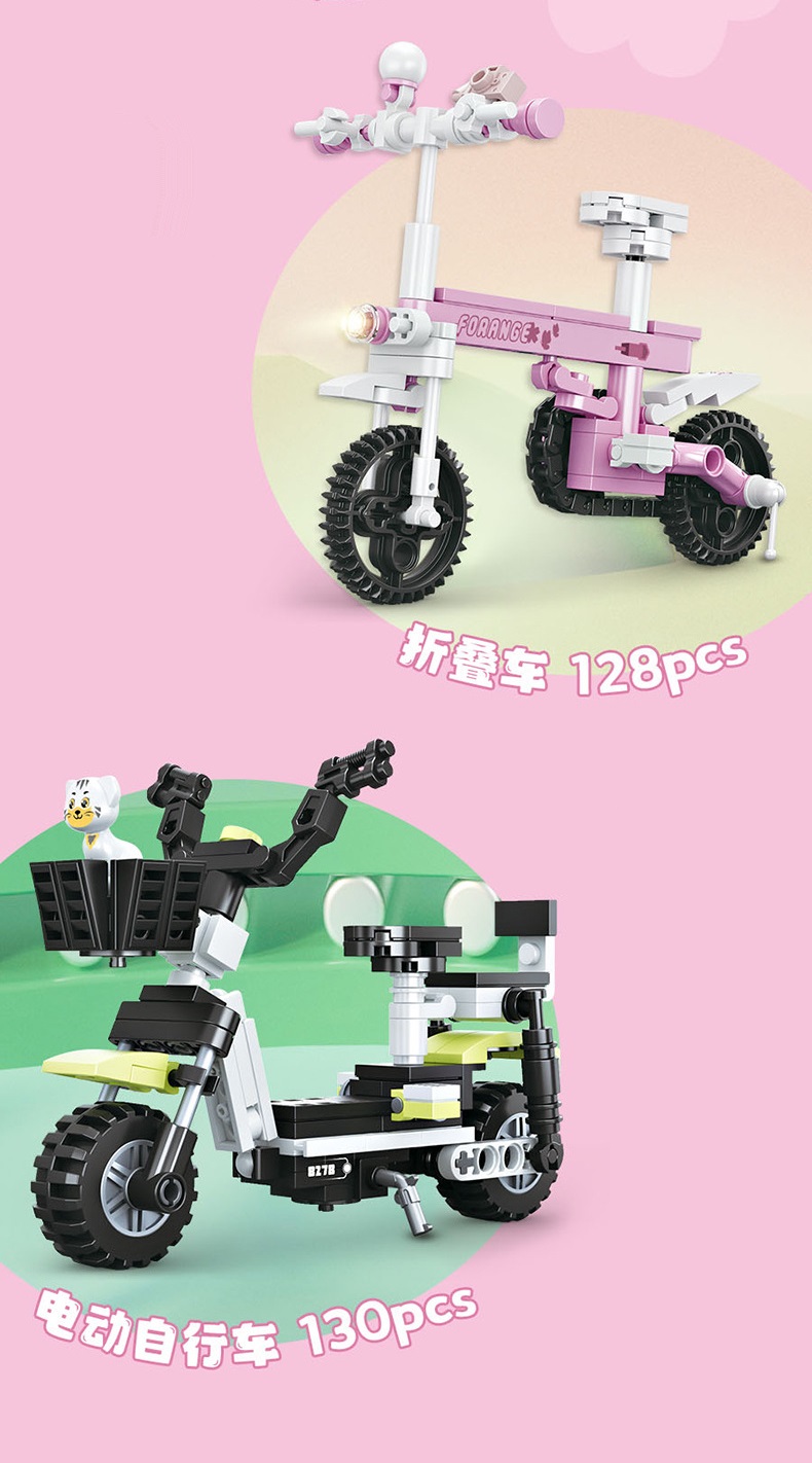 Đồ chơi lắp ghép xếp hình xe các loại: xe điện, xe scooter, xe máy từ 102 đến 130 chi tiết:
