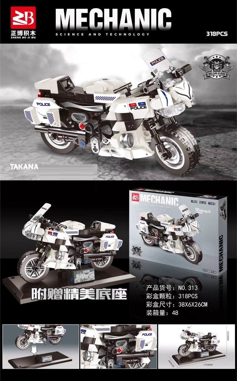 Đồ chơi lắp ghép xếp hình xe moto cản.h sá.t giao thông với 318 mảnh ghép cho bé: