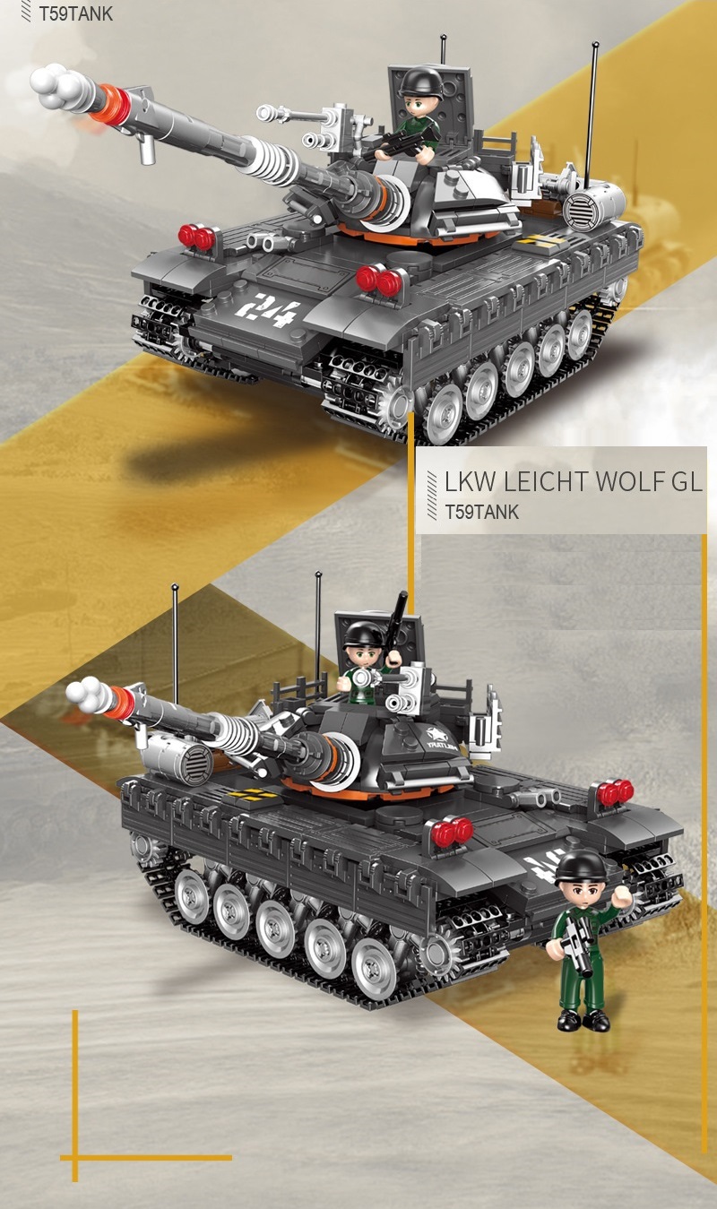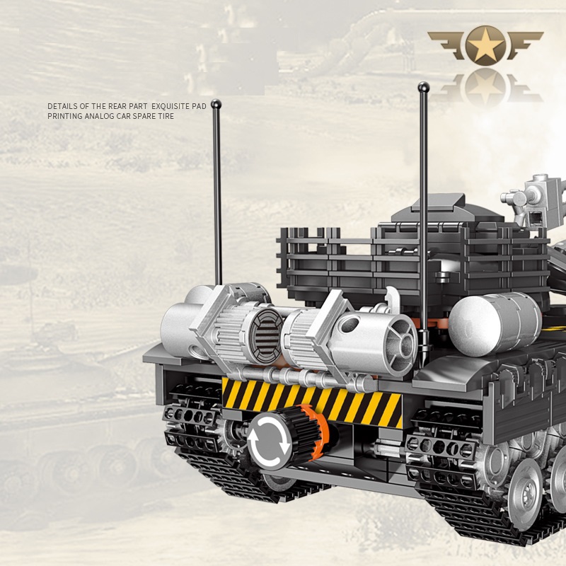 Đồ chơi lắp ghép xếp hình xe tăng quân sự có khớp xoay linh hoạt với 607 mảnh ghép là đồ chơi lắp ráp mô hình sáng tạo 607 khối và nhân vật xe quân sự, các nhân vật giúp triển trí tuệ dành cho trẻ từ 6 tuổi trở lên.