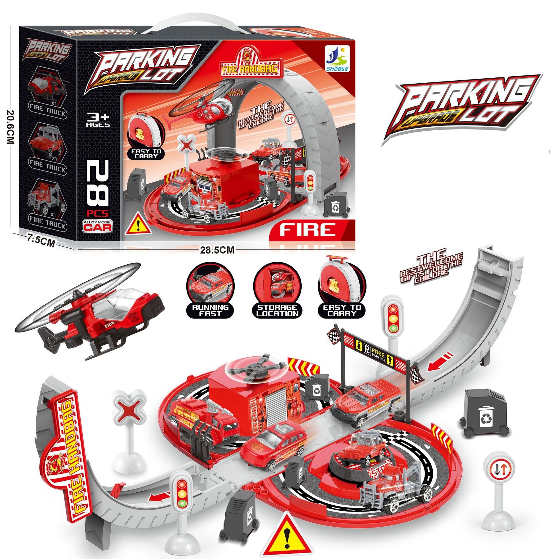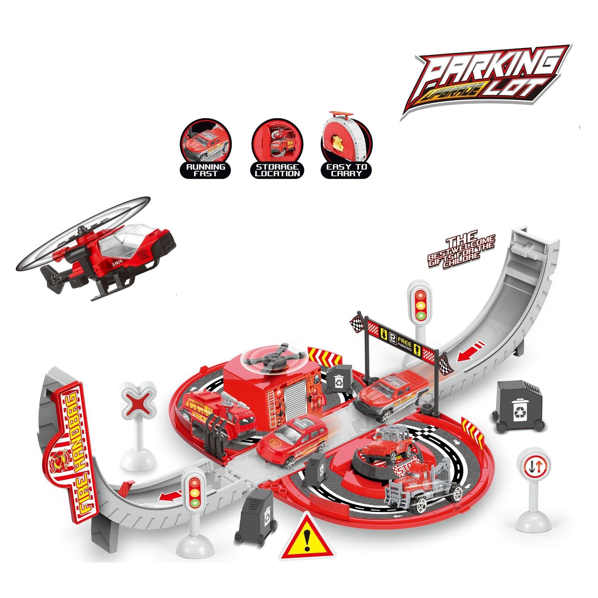 Đồ chơi mô hình bãi đỗ ô tô, trực thăng có nhà chứa, đường ray với hơn 28 chi tiết: