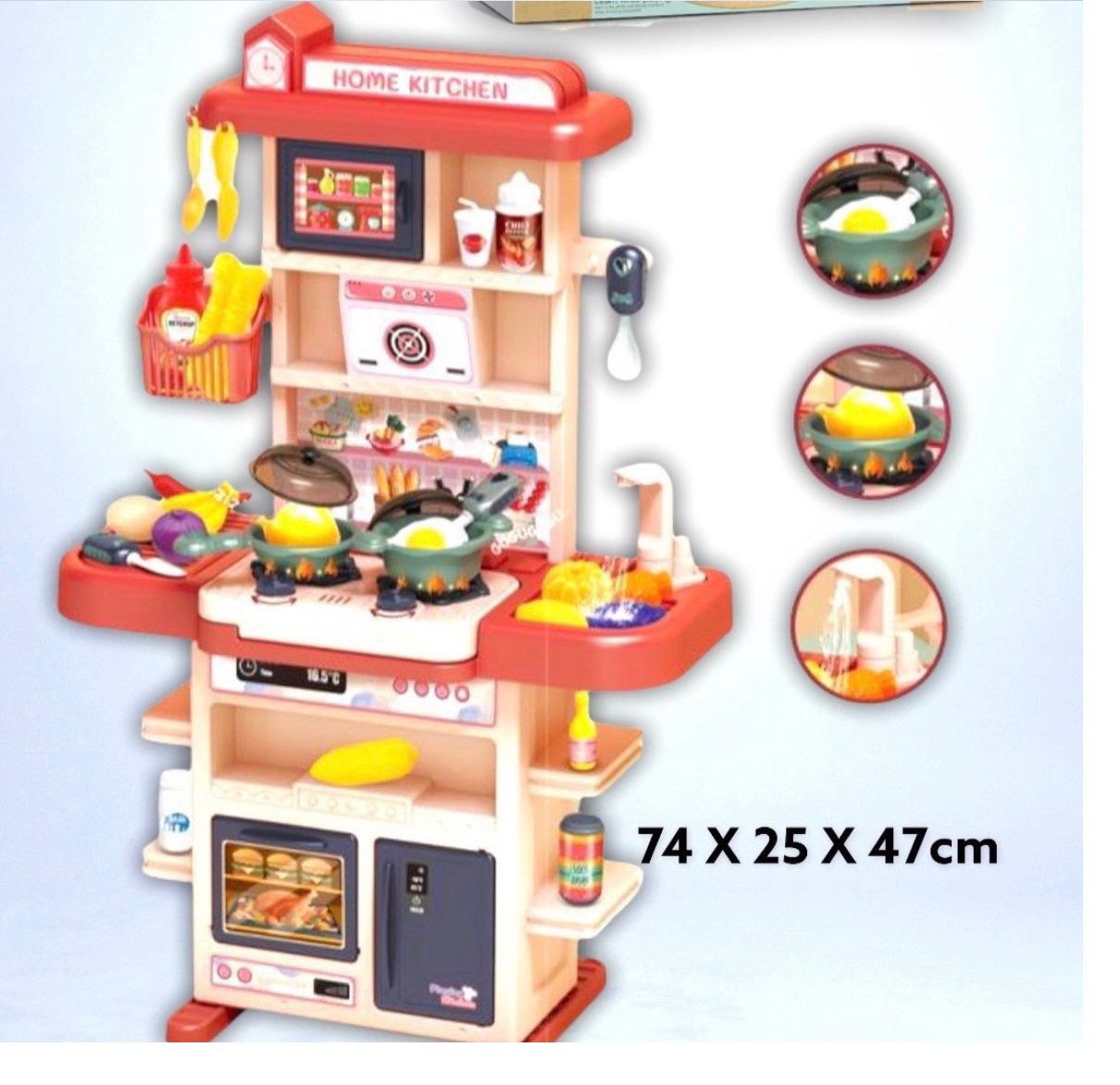 - Đầy đủ dụng cụ mô phỏng bếp nấu ăn như: nồi nấu, nồi chiên, muỗng, đũa, dao.....