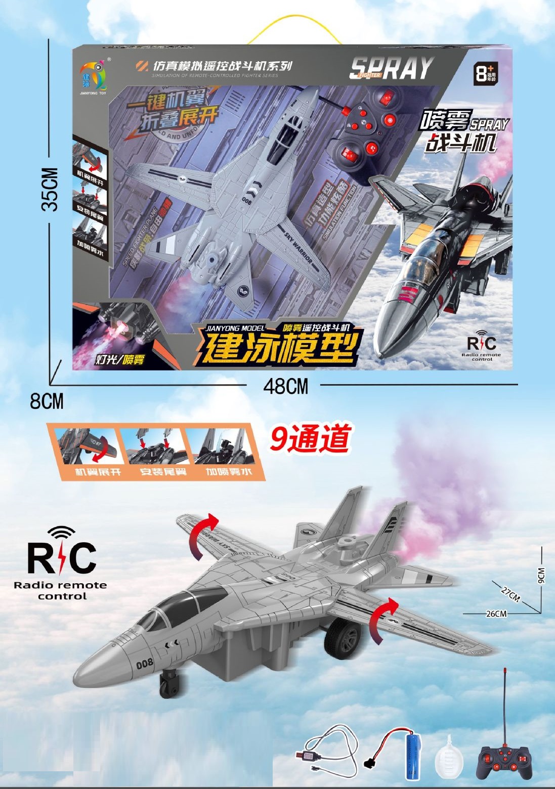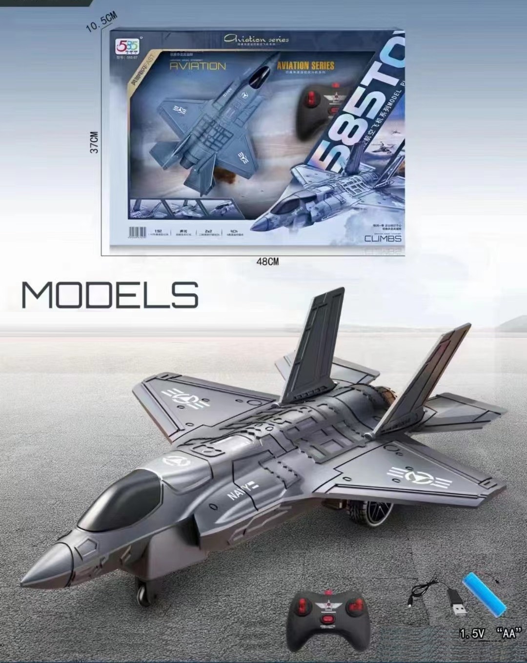 Đồ chơi mô hình máy bay tiêm kích cỡ lớn có điều khiển từ xa, phun khói, kèm nhạc và đèn cho bé: