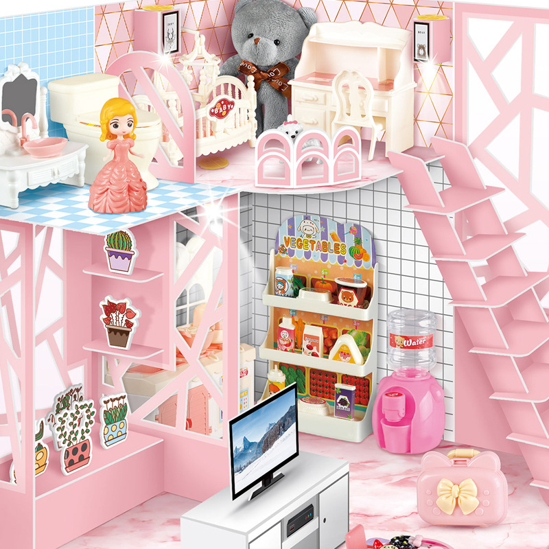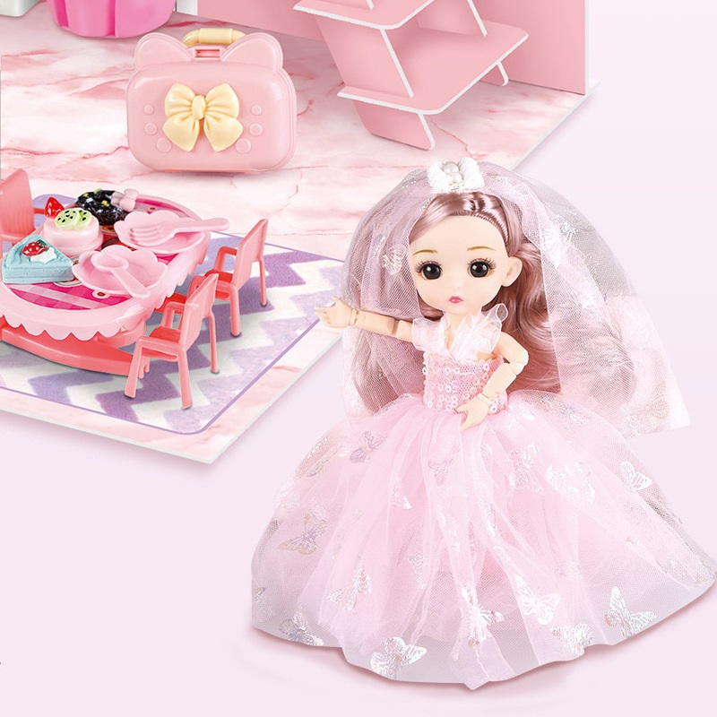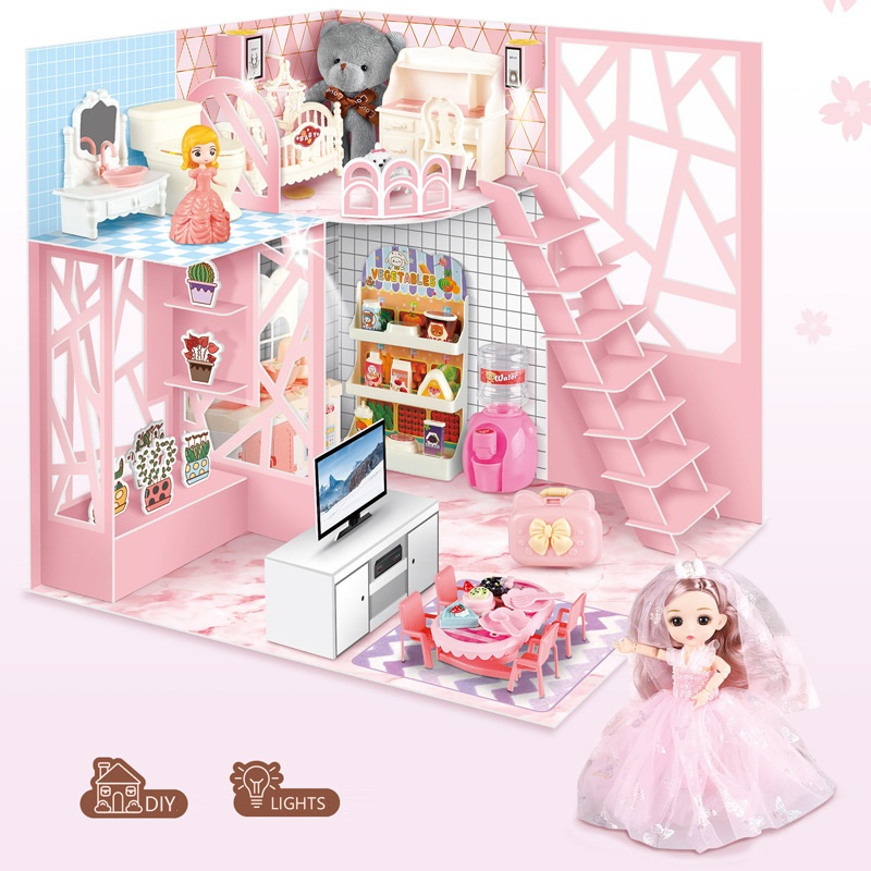 - Kèm theo các dụng cụ sinh hoạt trong phòng ngủ và phòng tắm giúp bé nhập vai khi chơi