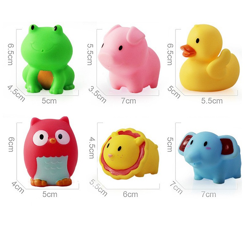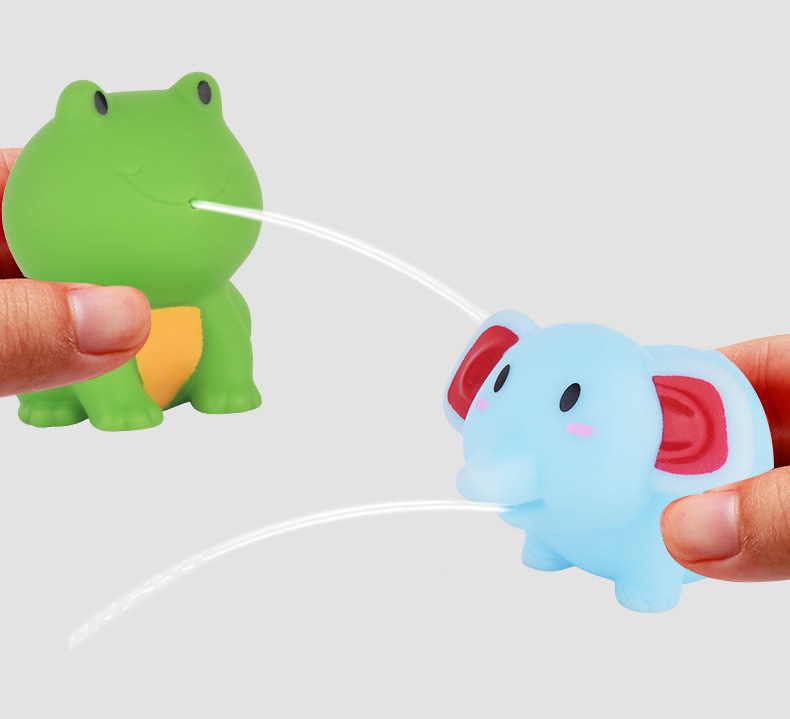 📌 Các con thú được làm từ cao su mềm và an toàn cho bé, có thể phun nước khi bóp vào.