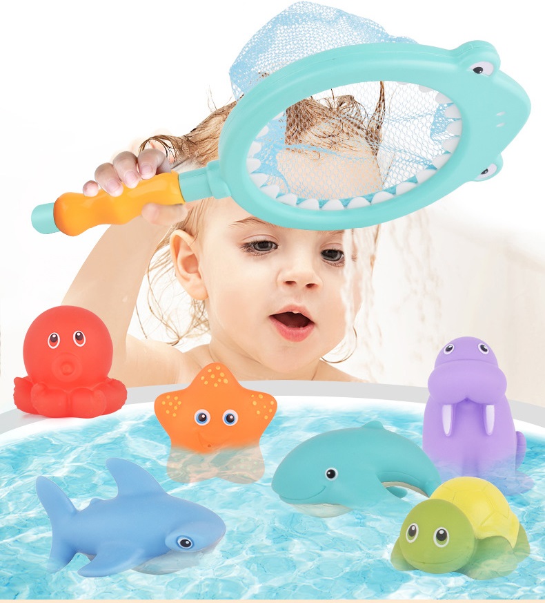 Đồ chơi nhà tắm các con vật phun nước và vợt hoạt hình vui nhộn cho bé vui tắm mỗi ngày: