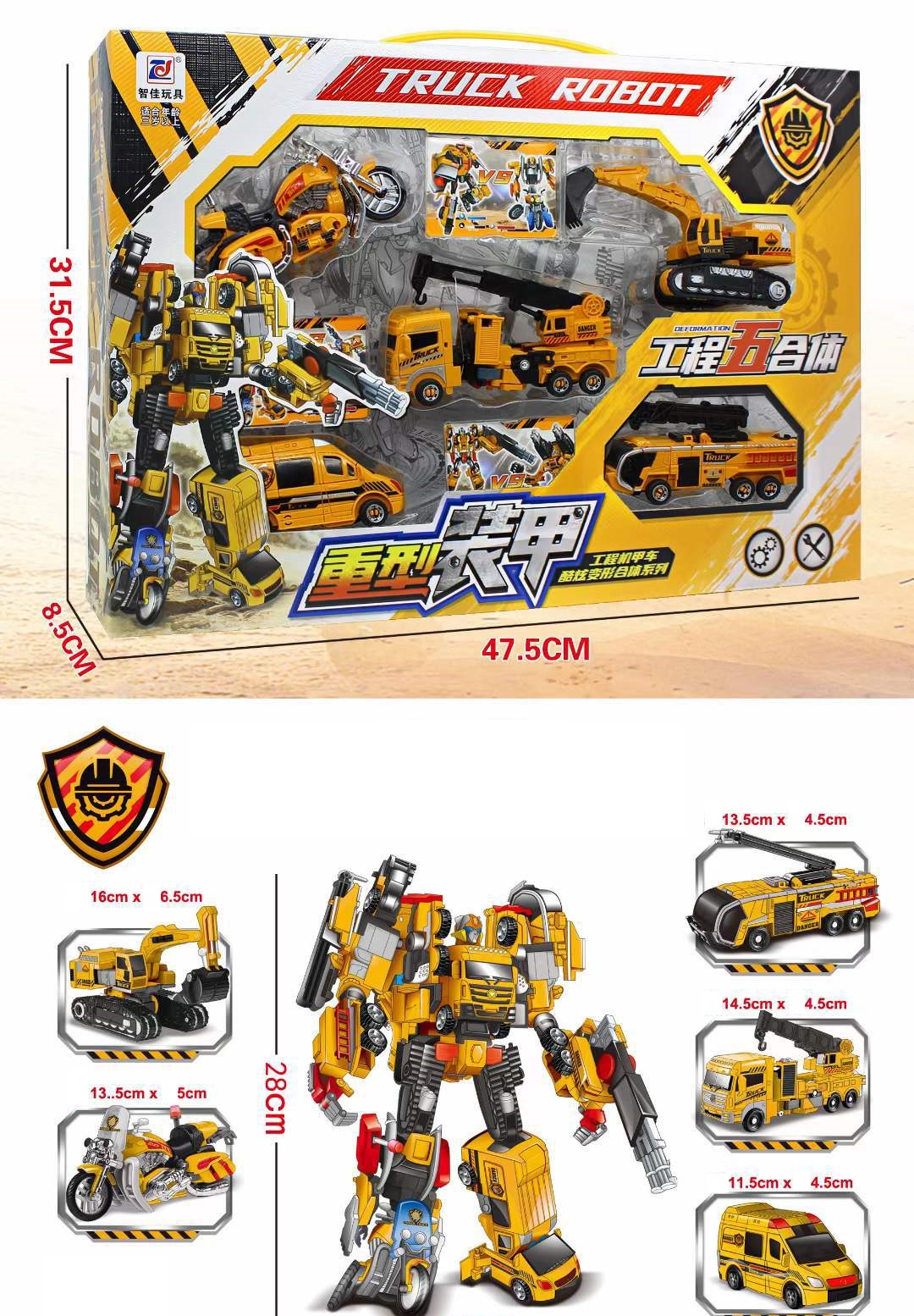 Đồ chơi robot lắp ghép từ 05 xe tải công trình cho bé: