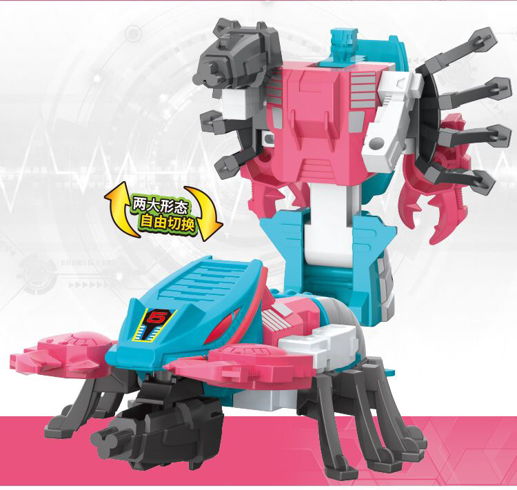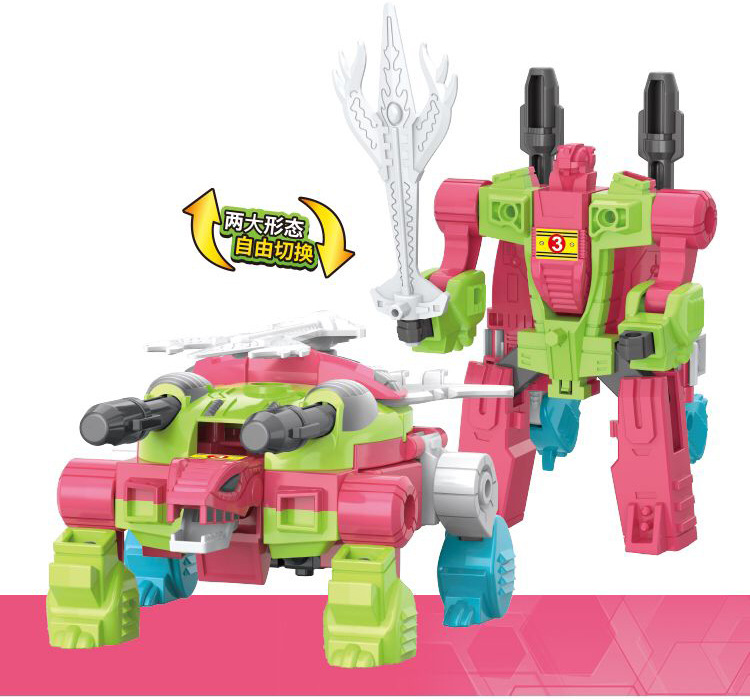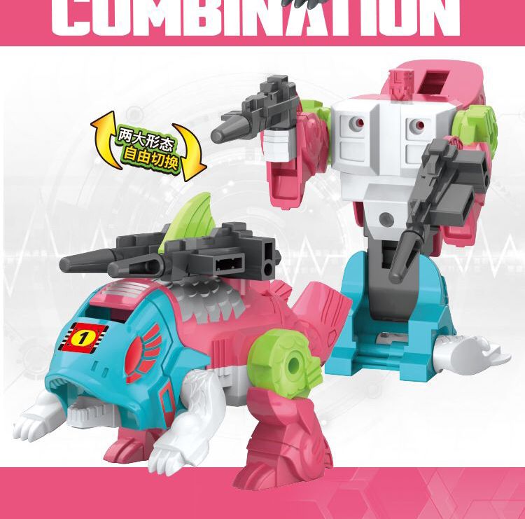 Đồ chơi robot quái thú hồng lắp ghép từ 6 robot thú cho bé: