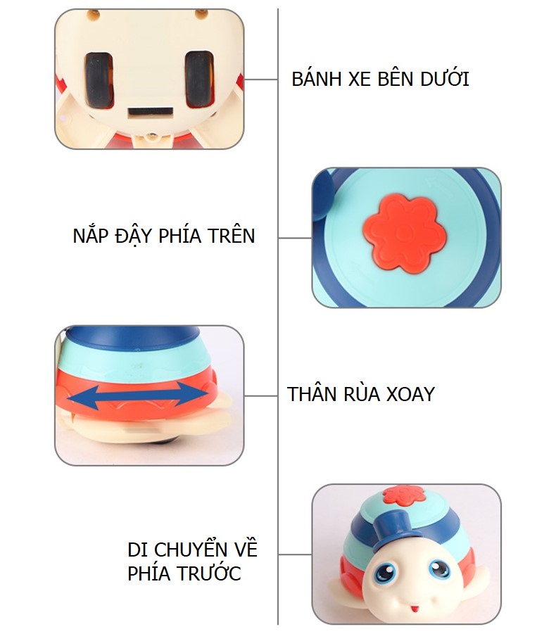 - Phía trên mai rùa có một nắp nhỏ để bé có thể đựng quà hoặc đồ chơi bí mật cho bé