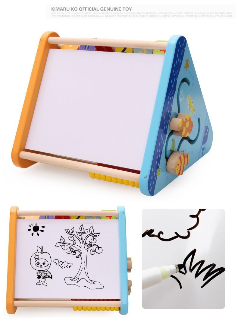 - Mặt kia là bảng trắng kèm bút vẽ, giúp bé luyện chữ và hình trong lúc chơi