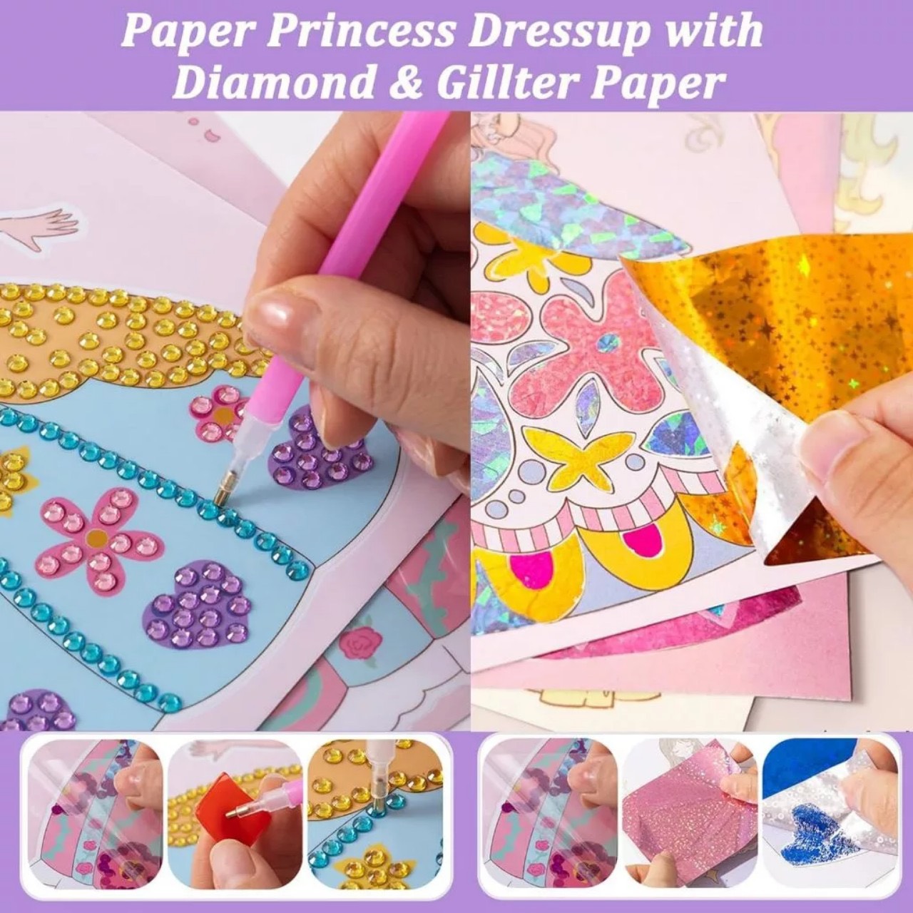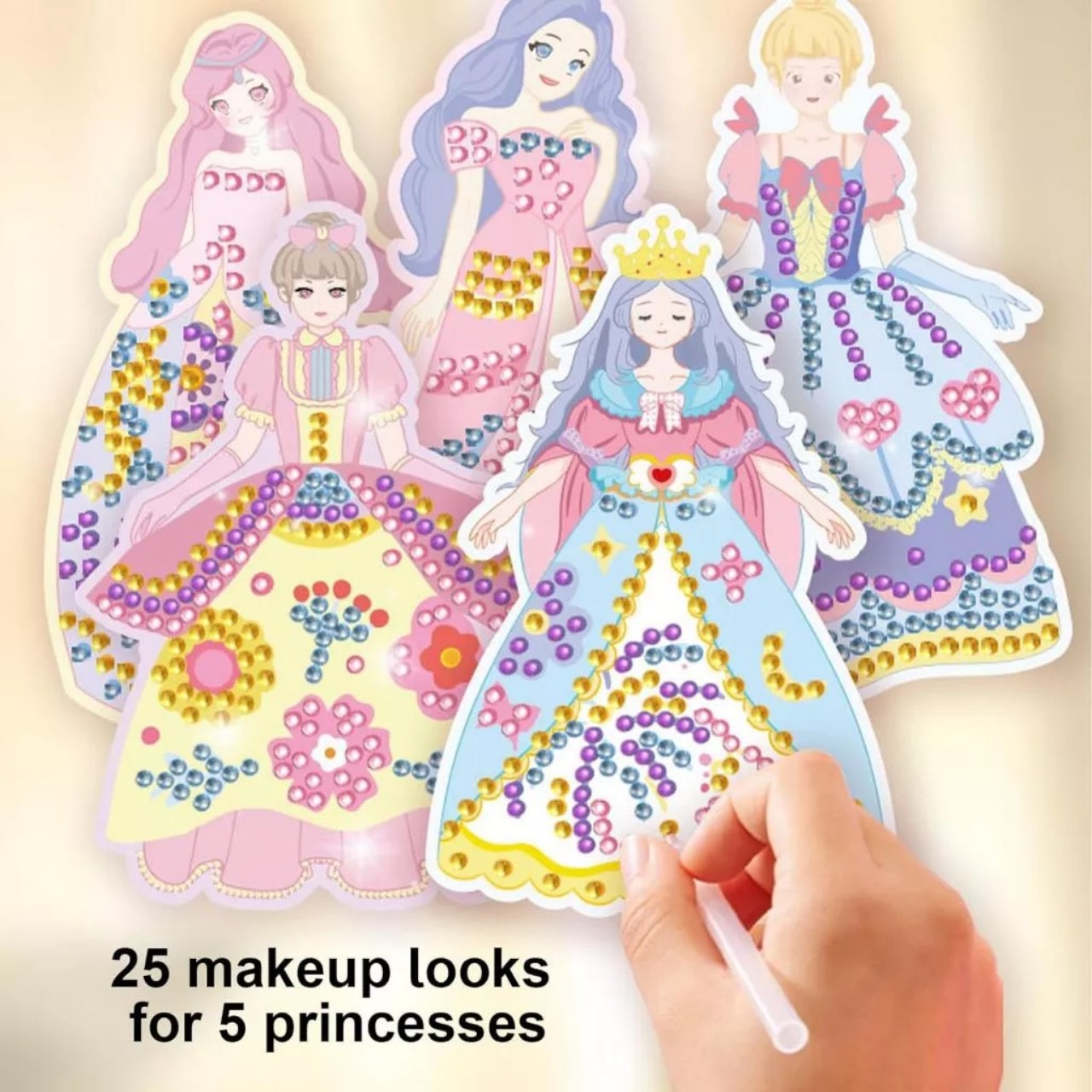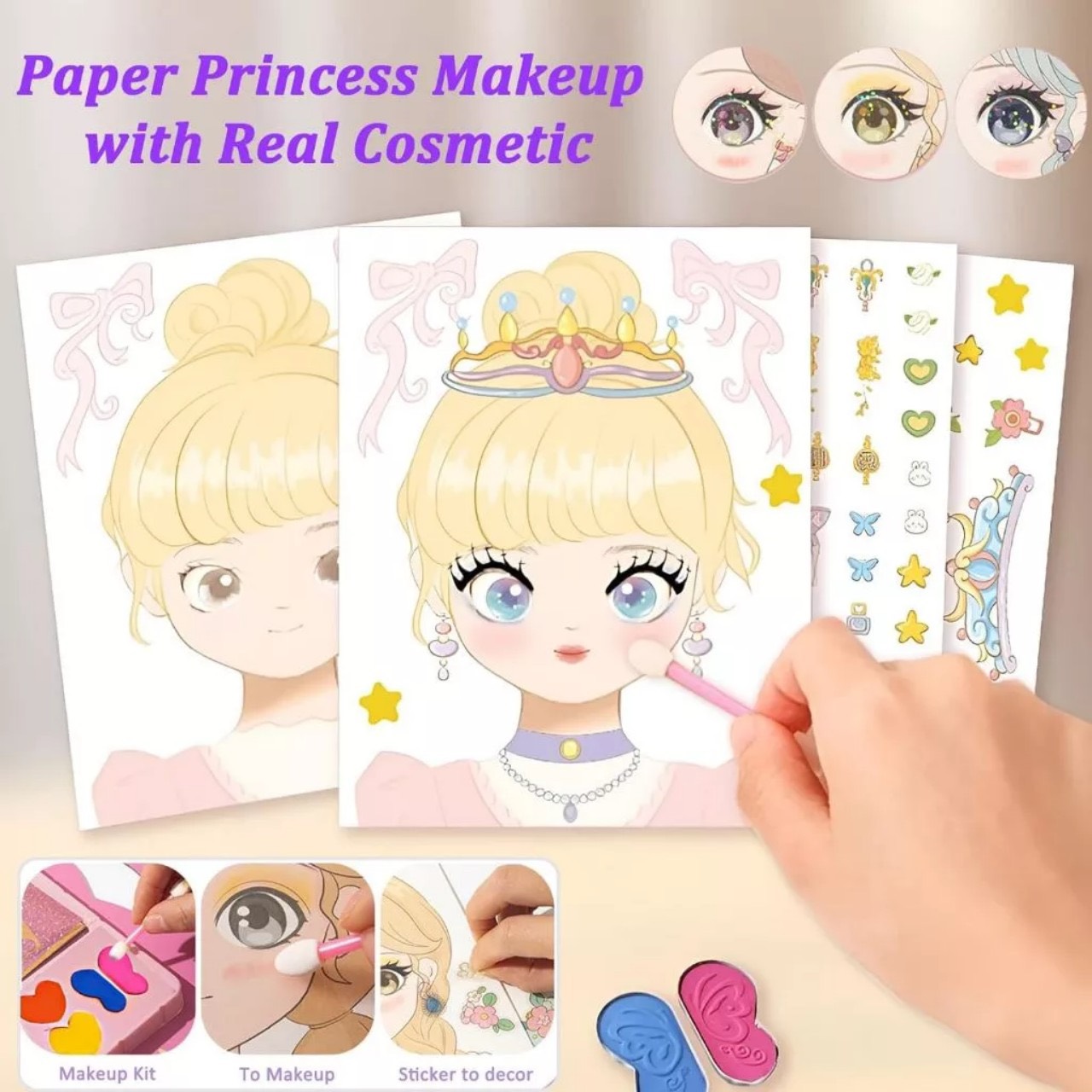 - Bên trong có các mẫu khuôn mặt và váy công chúa để bé tha hồ trổ tài trang điểm