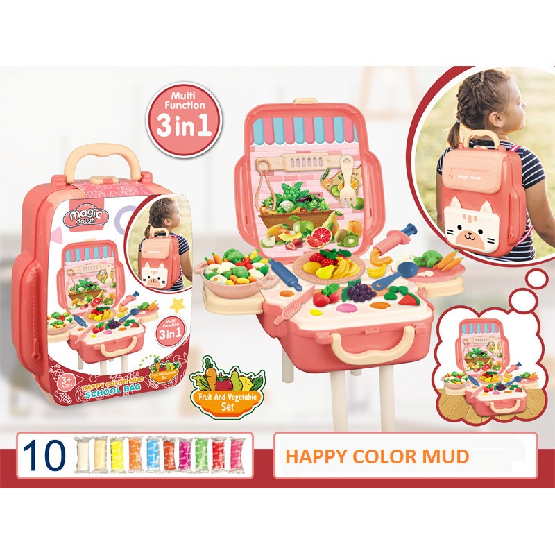 Đồ chơi vali nấu ăn 3 trong 1 kèm dụng cụ làm bếp và đất nặn 10 màu sắc nổi bật cho bé: