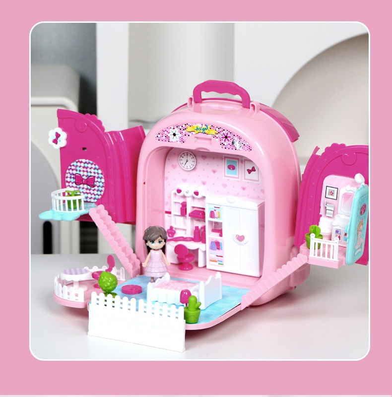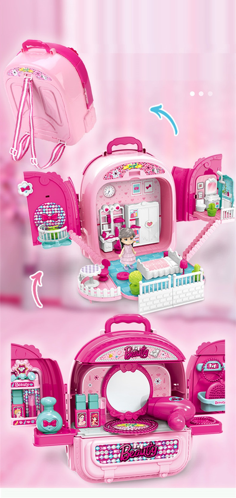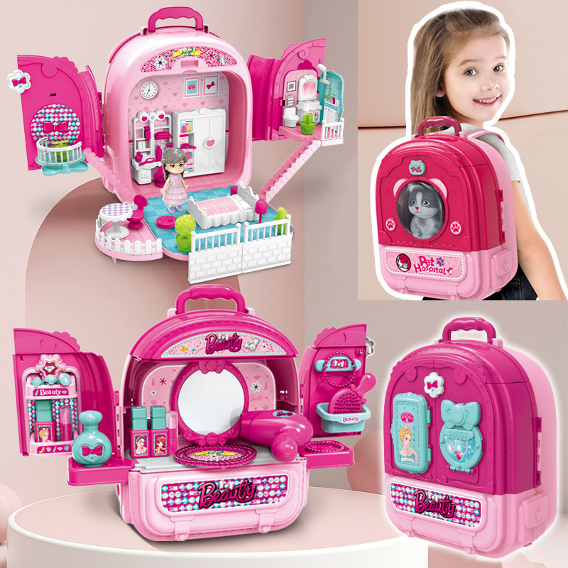 Đồ chơi vali trang điểm 3 trong 1 vừa làm phòng trang điểm-căn phòng búp bê và vali đeo cho bé: