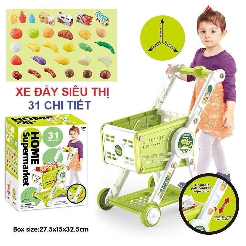 Đồ chơi xe đẩy siêu thị 31 chi tiết cao cấp cho bé nhập vai mua sắm