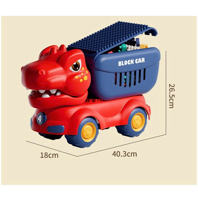 Đồ chơi xe ô tô đồ chơi khủng long kèm thùng chở lêgô 124 chi tiết cho bé: