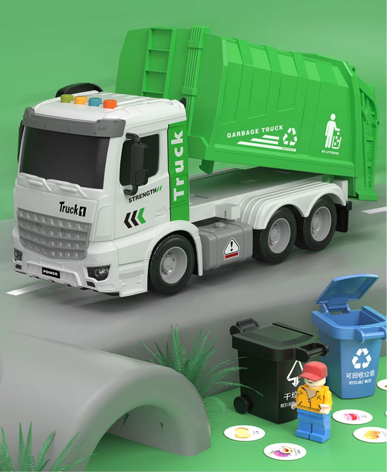 - Mô hình xe môi trường cực đẹp, màu xanh với 03 thùng rác nhỏ đủ màu sắc sẽ thu hút bé từ cái nhìn đầu tiên