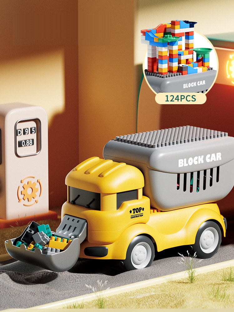Đồ chơi xe ô tô máy xúc đồ chơi kèm thùng chở lêgô 124 chi tiết cho bé: