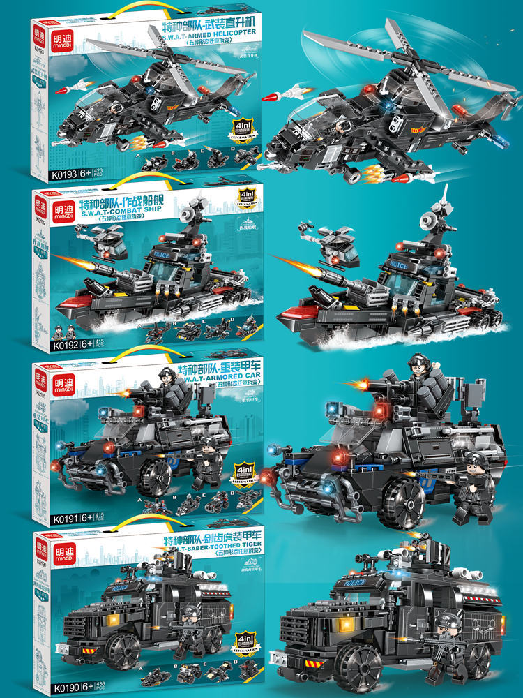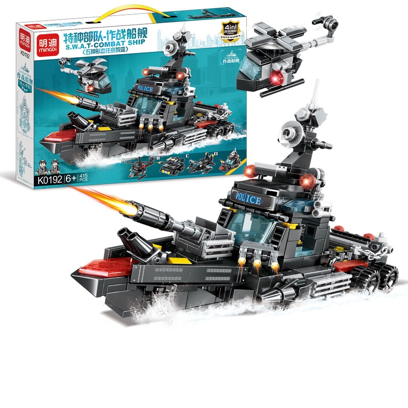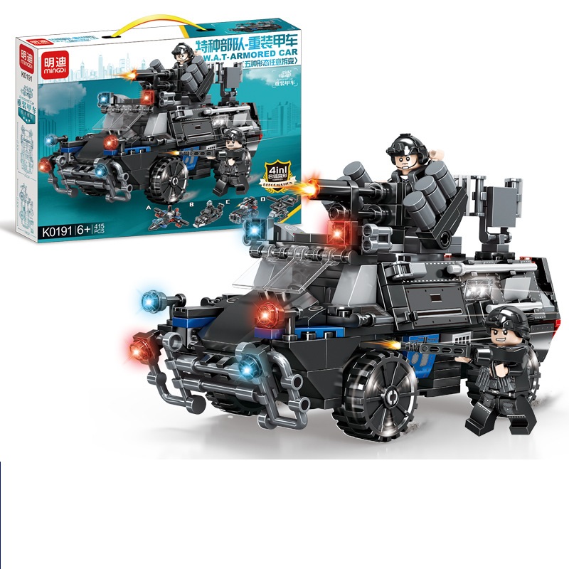 Đồ chơi xếp hình lắp ghép xe quân sự loại 4 trong 1 với 415 mảnh ghép cho bé
