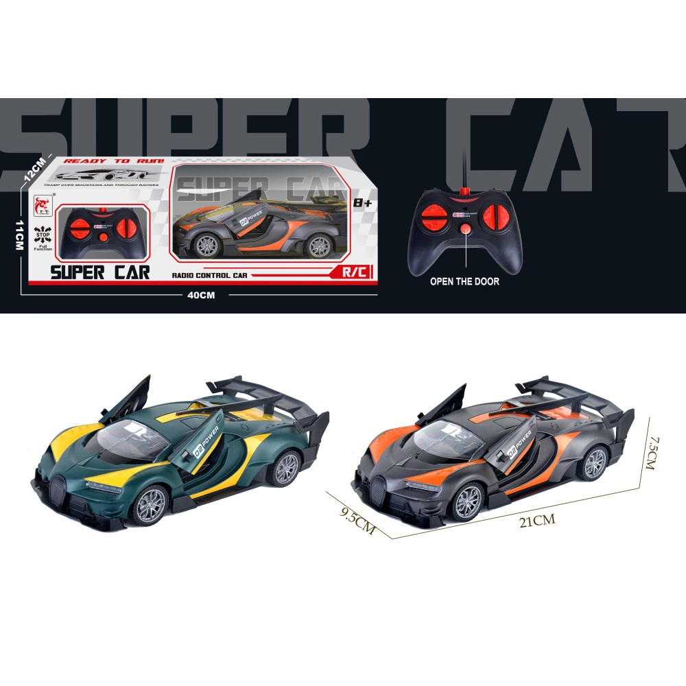 Đồ chơi xe thể thao xanh-đỏ có điều khiển 4 chiều và hai mở cánh bên hông xe cho bé: