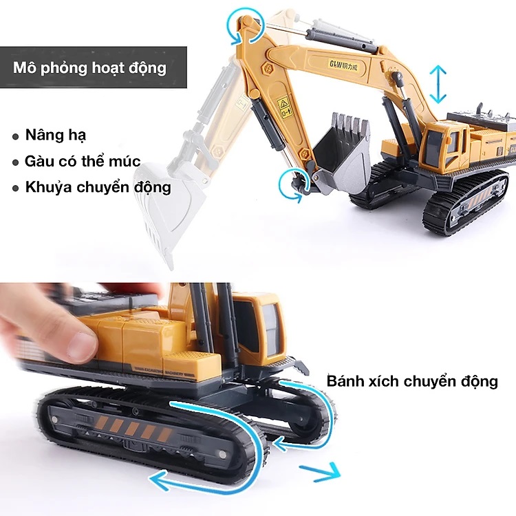 - Xe thiết kế đẹp và đủ công năng như thực tế: có thể nâng hạ gàu, xoay 360 độ, di chuyển tới lui....