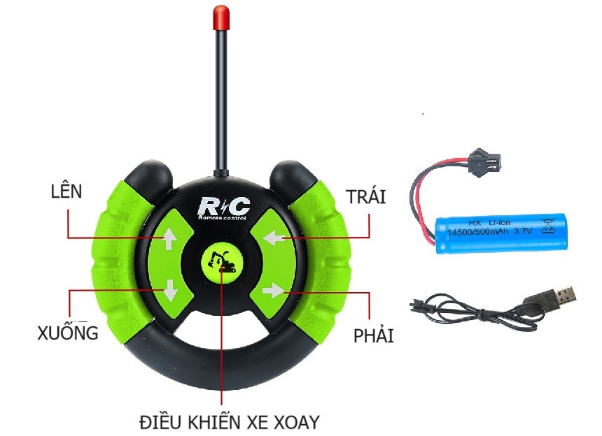 - Gầu xúc có thể di chuyển lên-xuống, còn thân xe có thể xoay tròn giúp bé có thể xúc được các đồ vật ở bất kỳ vì trí nào