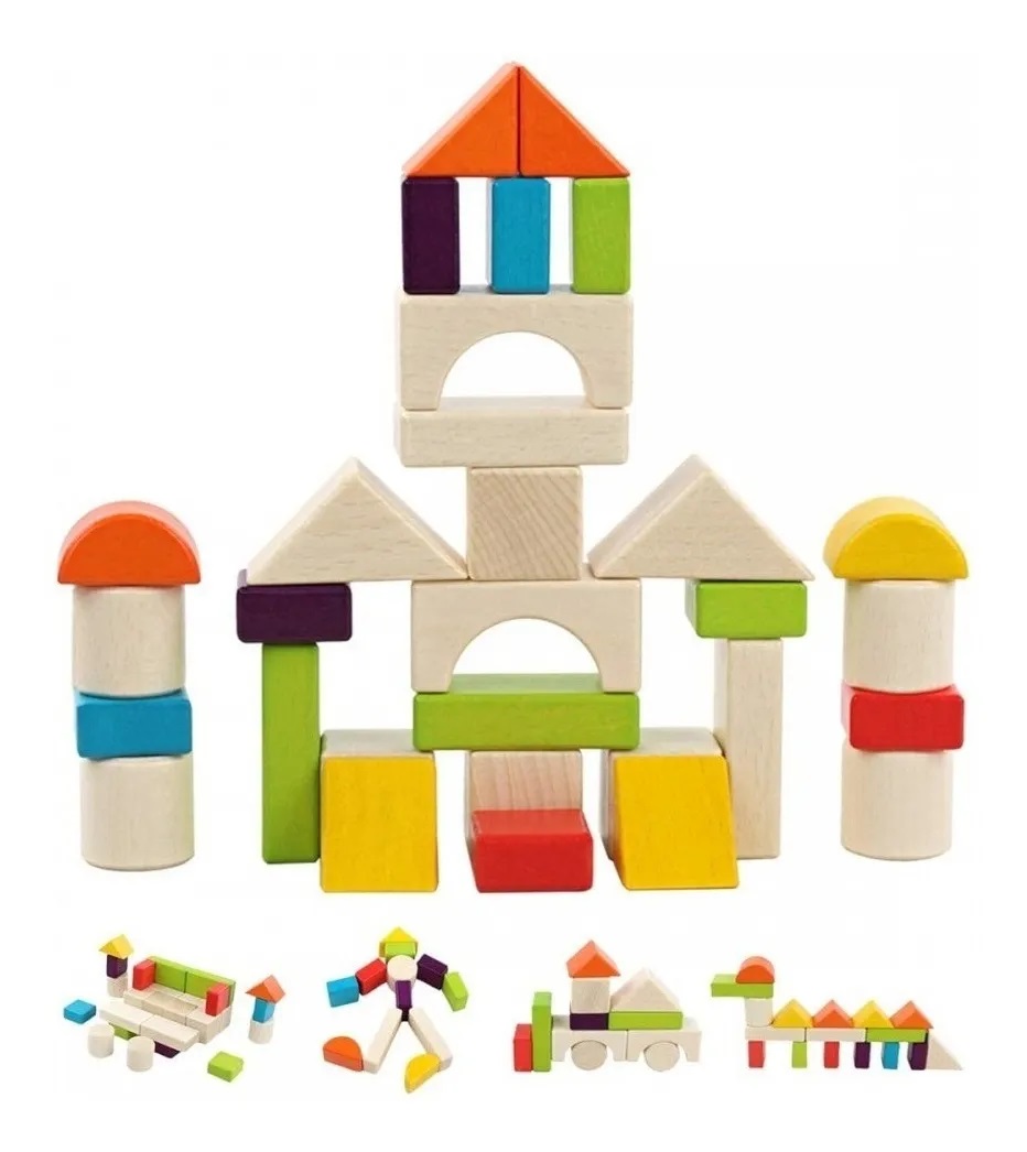 - Bộ đồ chơi gỗ giúp rèn luyện vận động tinh đôi bàn tay và các ngón tay, phối kết hợp tay và mắt. Phát triển khả năng tư duy logic, bé có thể phát triển sự sáng tạo xếp được thành nhiều mô hình khác nhau với các khối gỗ đơn giản không quá phức tạp.