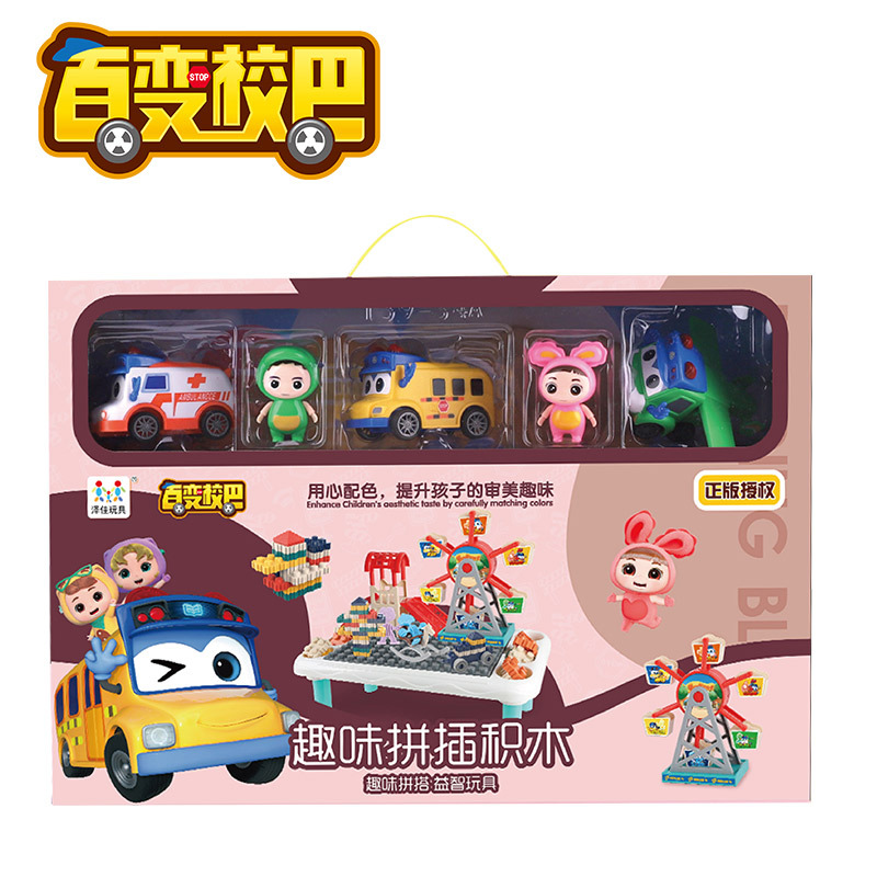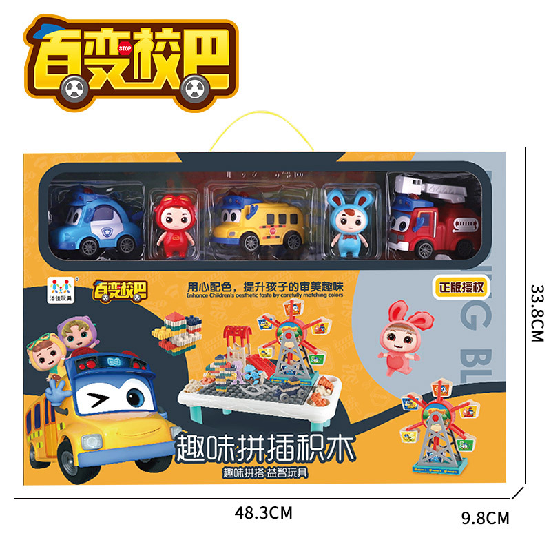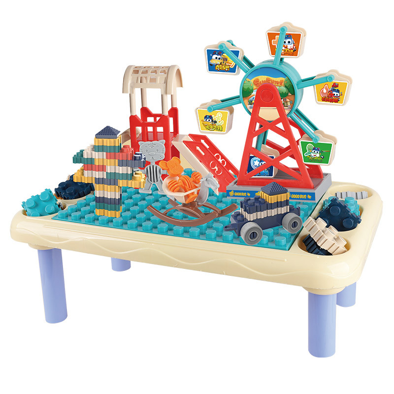 Đồ chơi xếp hình khu vui chơi trẻ em tháp đu quay, cầu trượt, các xe ô tô kèm bàn lắp ráp với 24 chi tiết cho bé