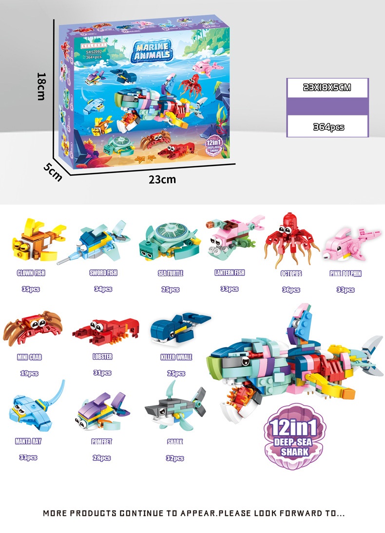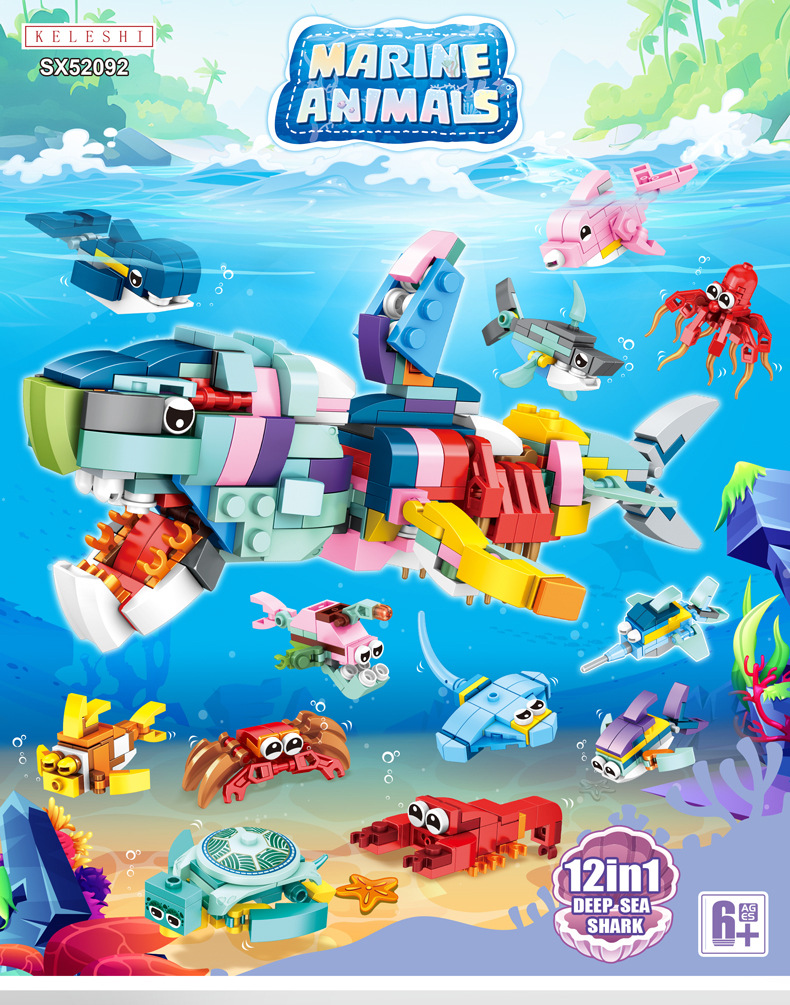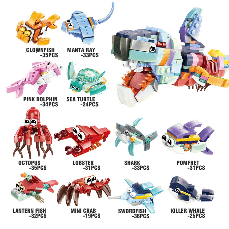 Đồ chơi xếp hình lắp ghép các mẫu sinh vật biển nhỏ từ 19-36 mảnh ghép cho bé: