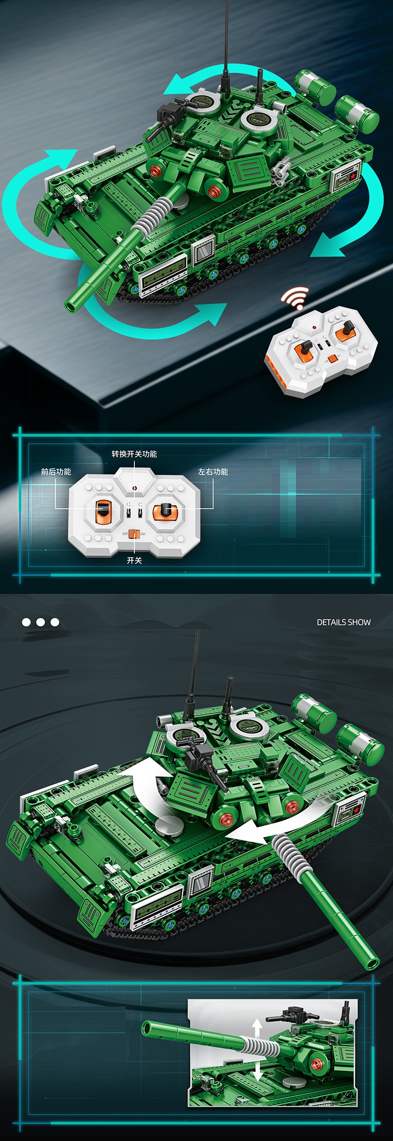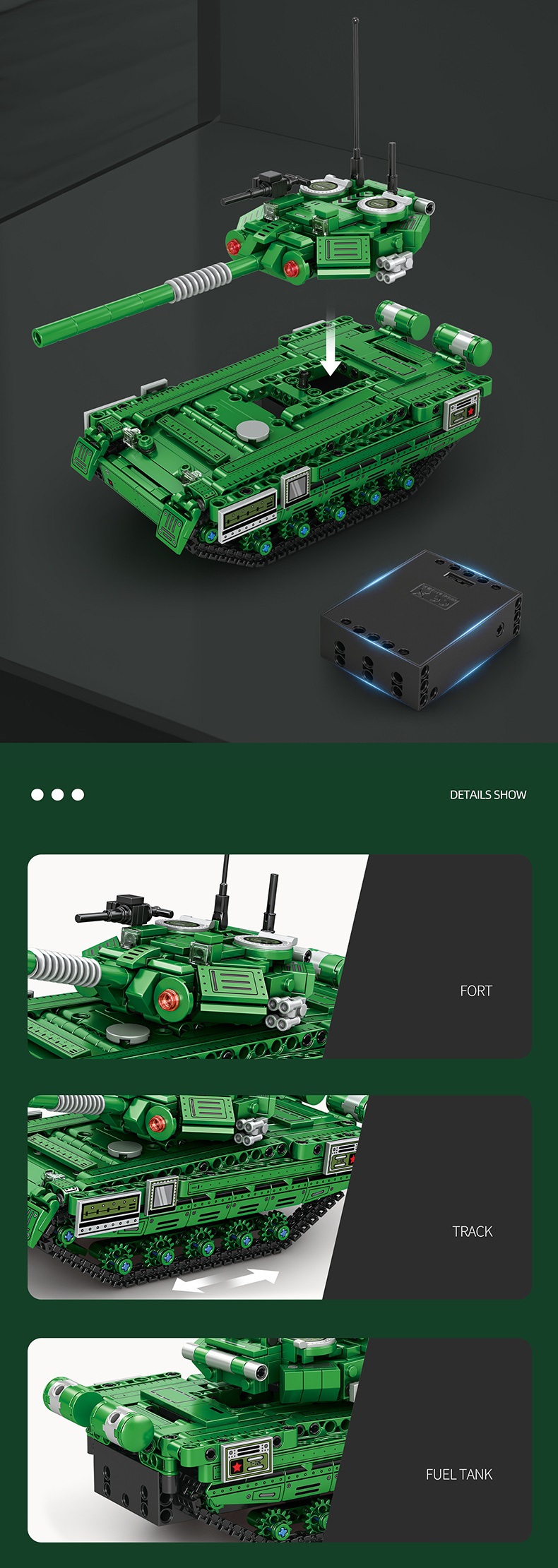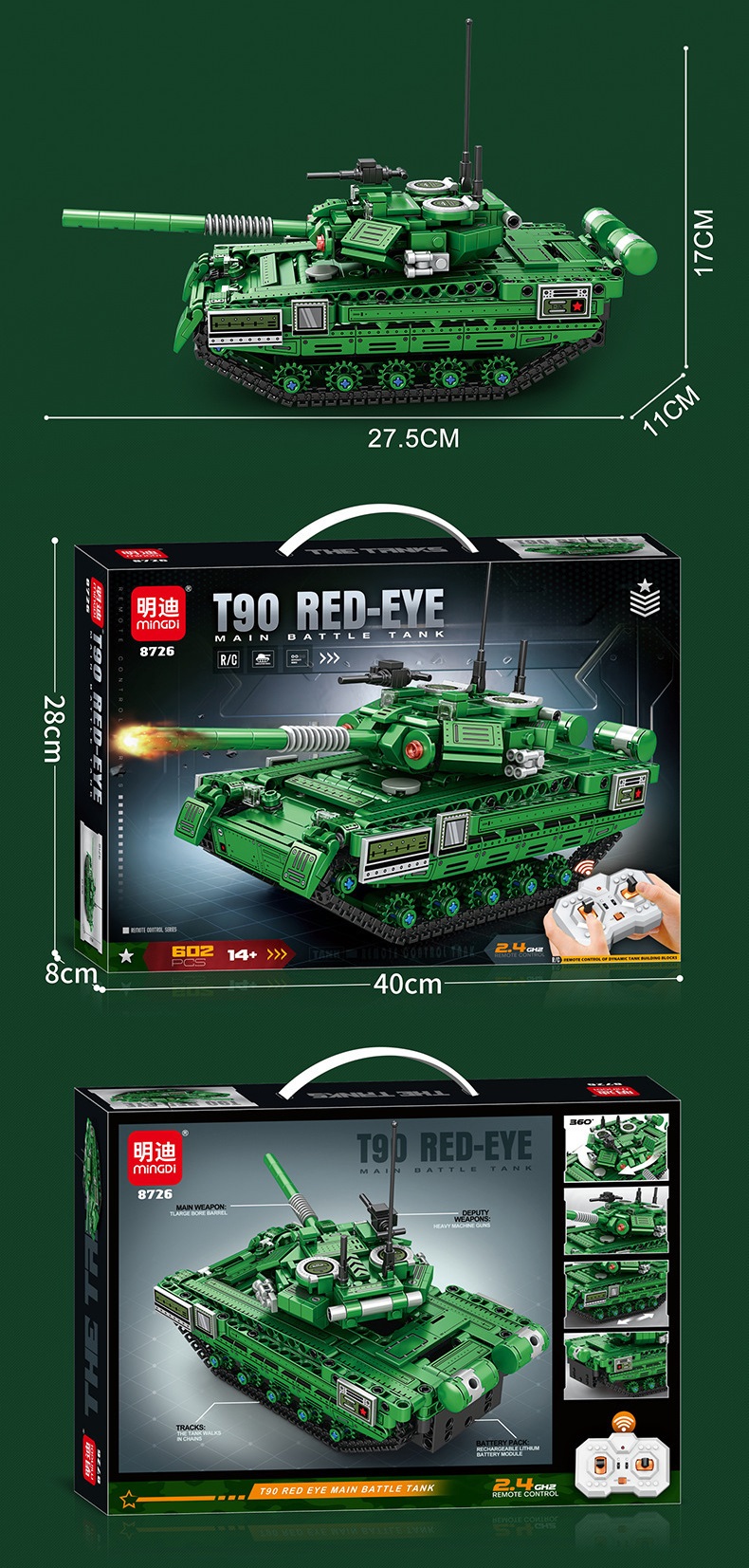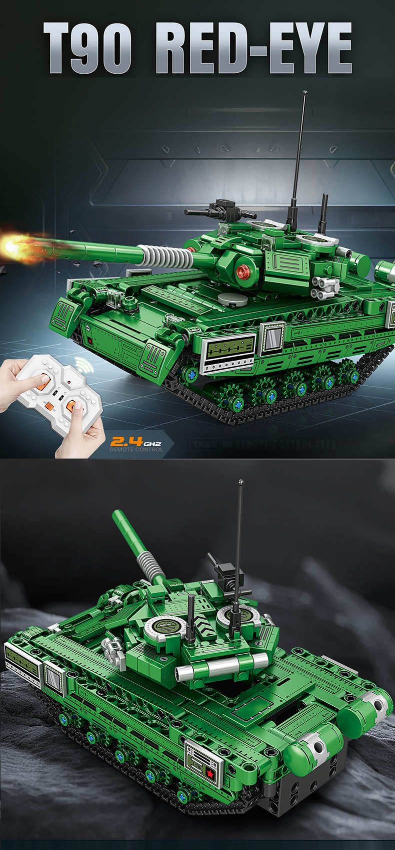 Đồ chơi xếp hình lắp ghép mô hình xe tăng T90 mới có động cơ điều khiển từ xa với 602 chi tiết cho bé: