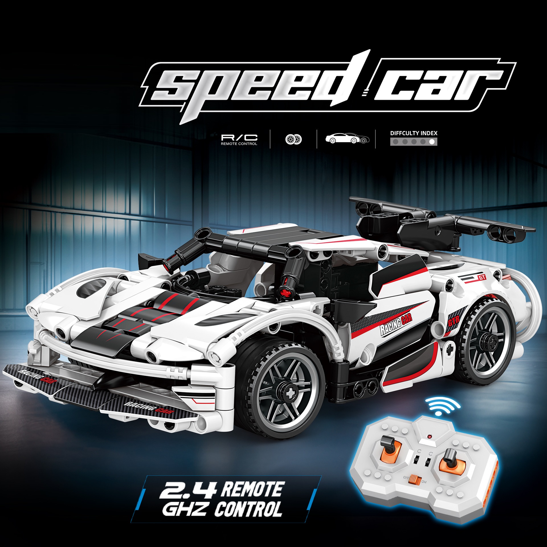 Đồ chơi xếp hình lắp ghép mô hình xe thể thao F1 cao cấp mẫu mới màu trắng có động cơ điều khiển từ xa với 310 chi tiết cho bé: