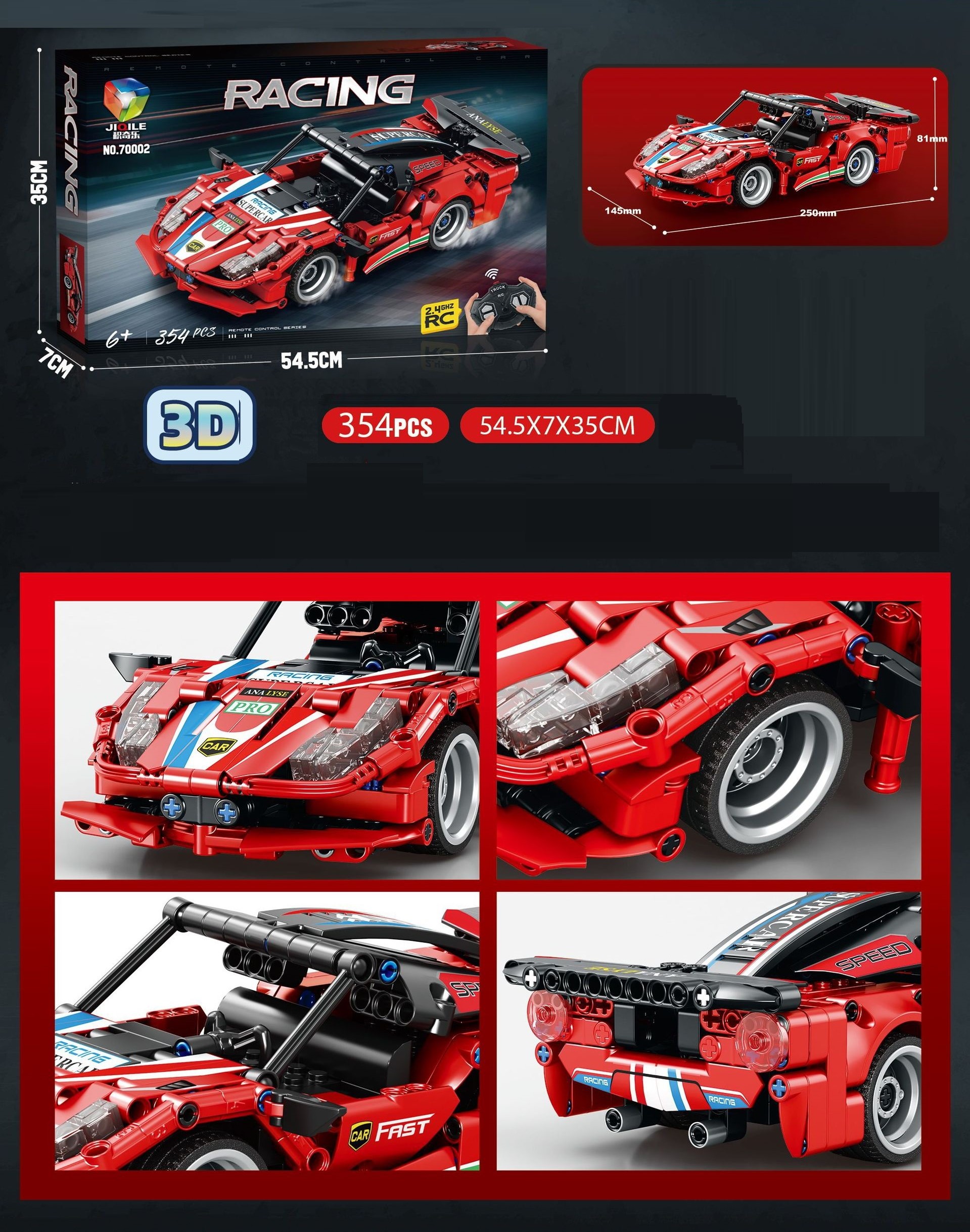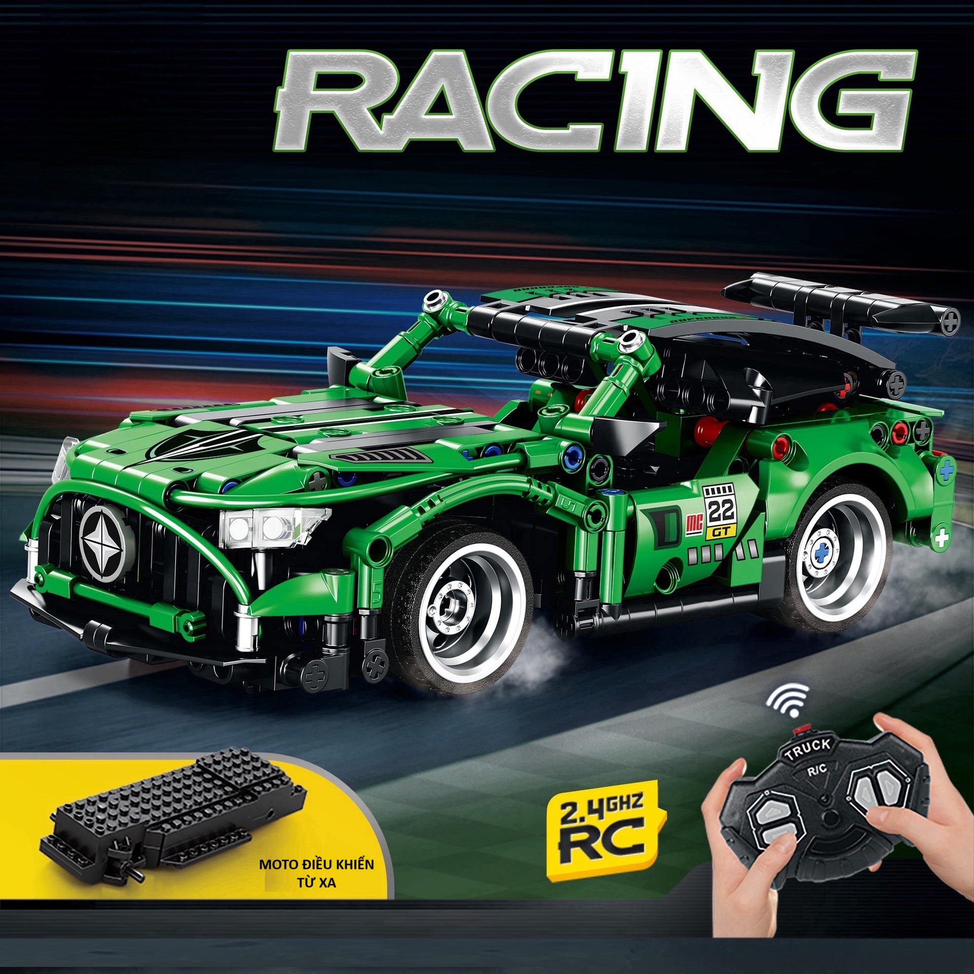 Đồ chơi xếp hình lắp ghép mô hình xe thể thao có động cơ điều khiển từ xa 335-354 chi tiết cho bé: