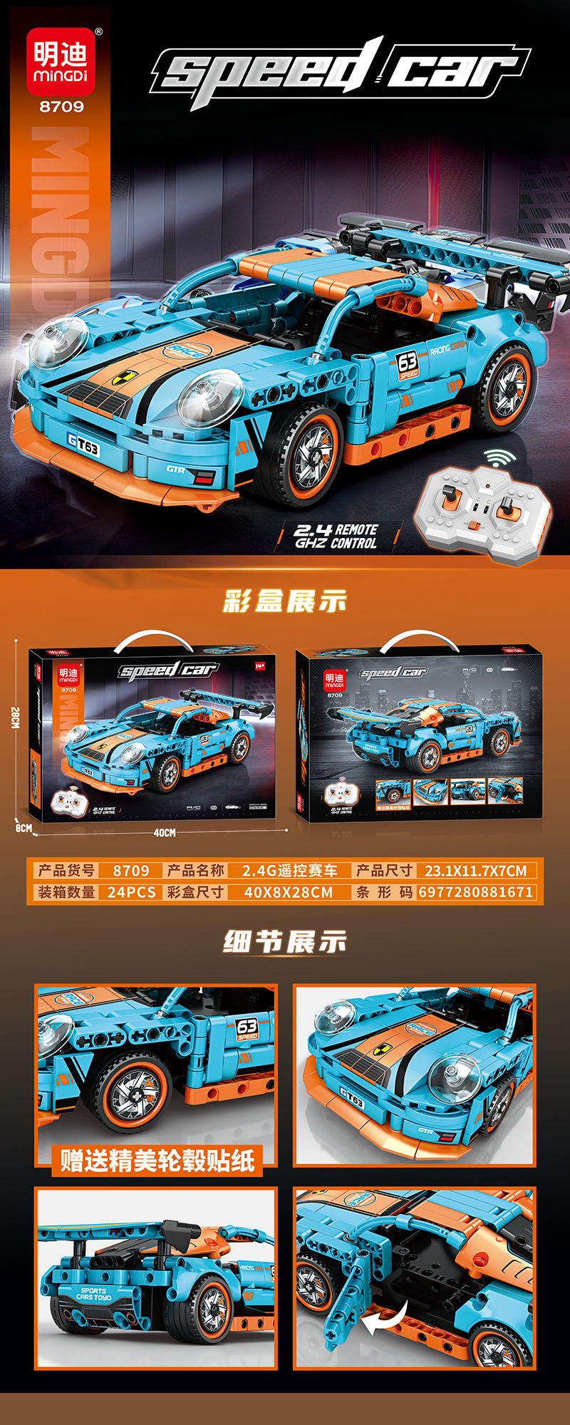 Đồ chơi xếp hình lắp ghép mô hình xe thể thao có động cơ điều khiển từ xa 400 chi tiết cho bé: