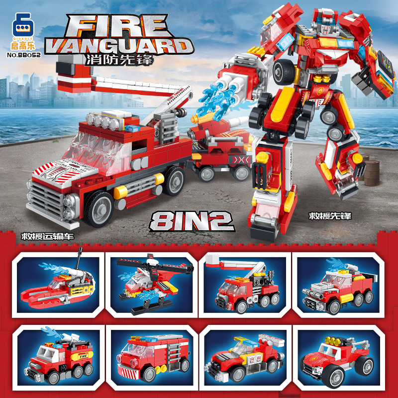 Đồ chơi xếp hình lắp ghép robot cứu hỏa 8 trong 2 với nhiều chi tiết, mẫu ghép khác nhau trên 753 chi tiết cho bé:
