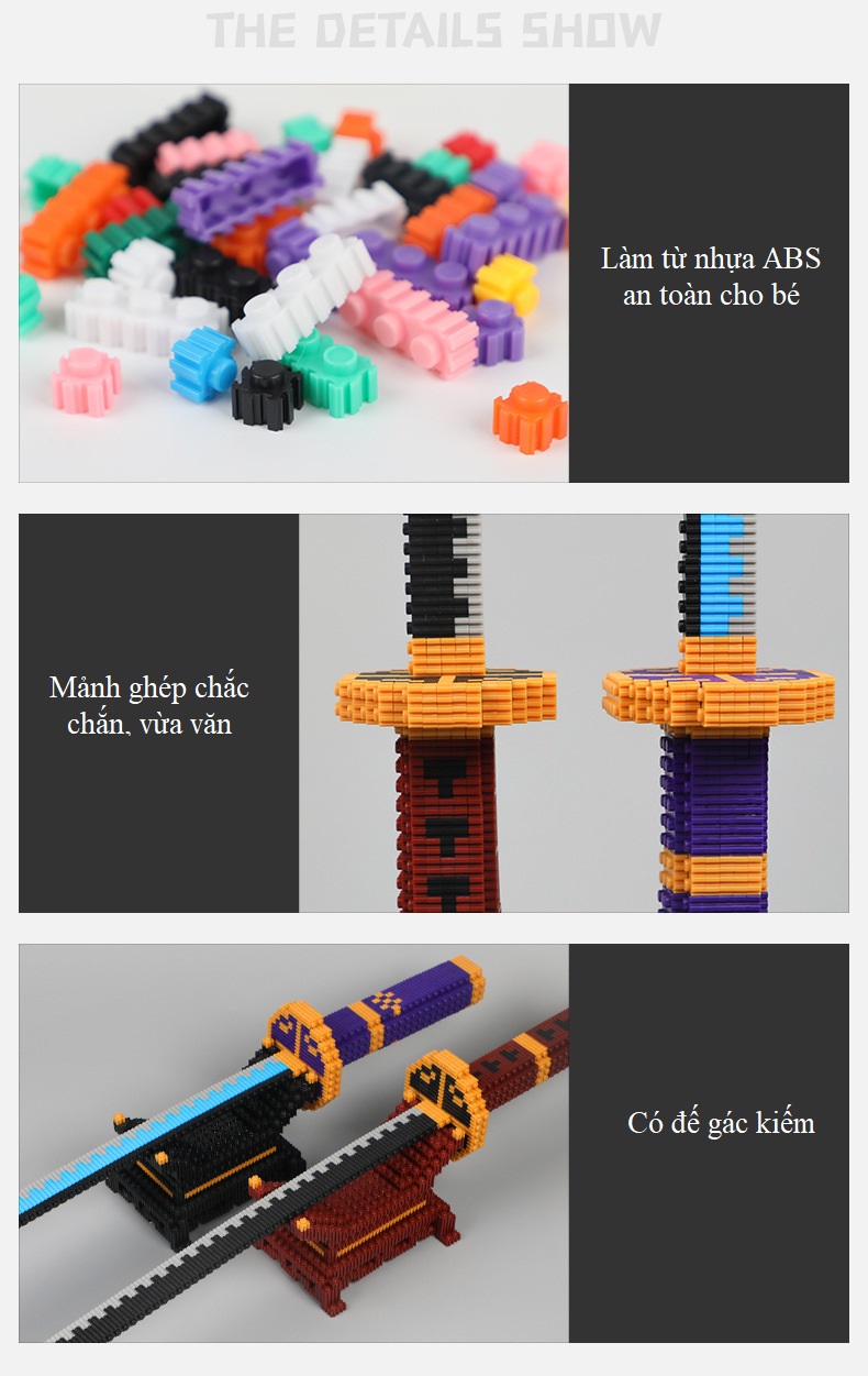 Đồ chơi xếp hình lắp ráp kiếm katana chuzan 60cm loại combo bộ 2 kiếm + 2 đế với 2288 mảnh ghép:
