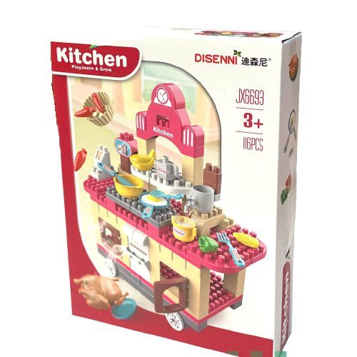 - Mô phỏng các dụng cụ của bếp như bếp nấu ăn, chén, bát, dao, đũa....giúp bé làm quen với công việc bếp núc