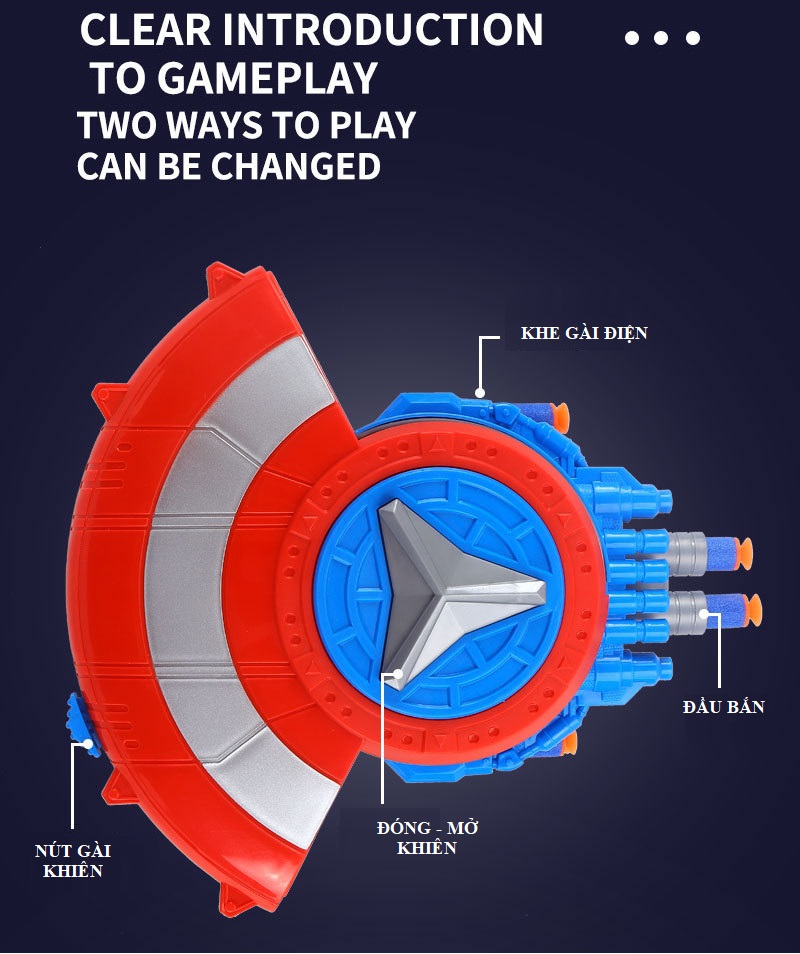 - Khiên có hai chế độ tấn công và phòng thủ khi chơi