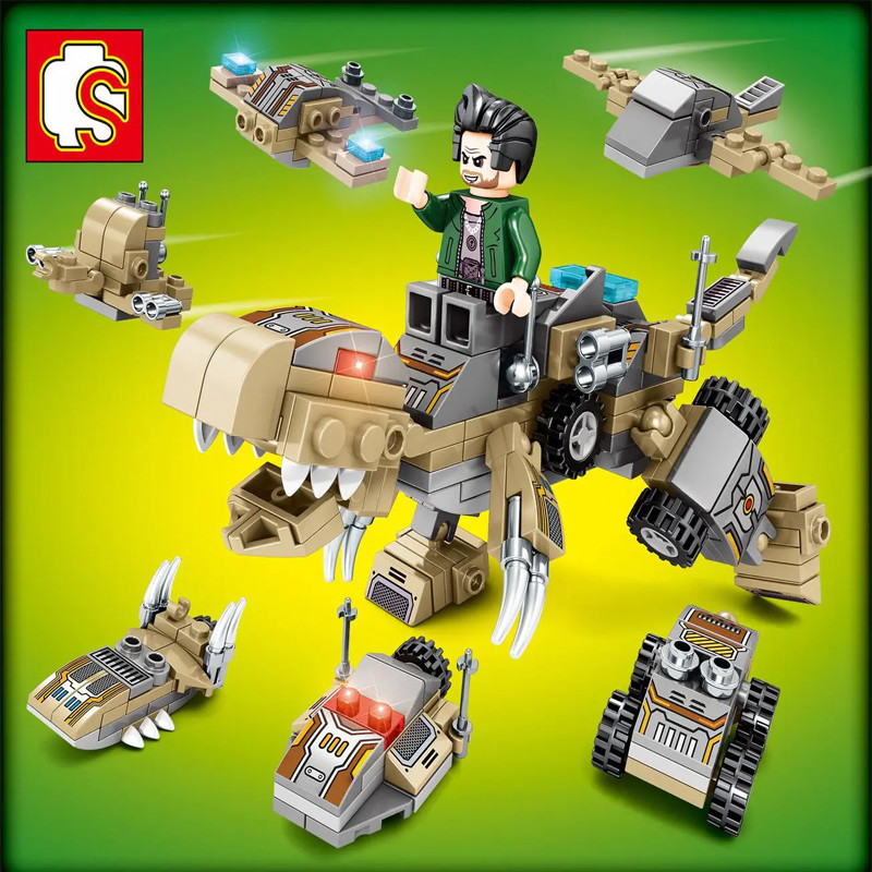 Đồ chơi lắp ghép xếp hình Khủng long chiến đấu 6 trong 1 với 166 mảnh ghép, mẫu khủng long lớn và nhiều chi tiết cho bé