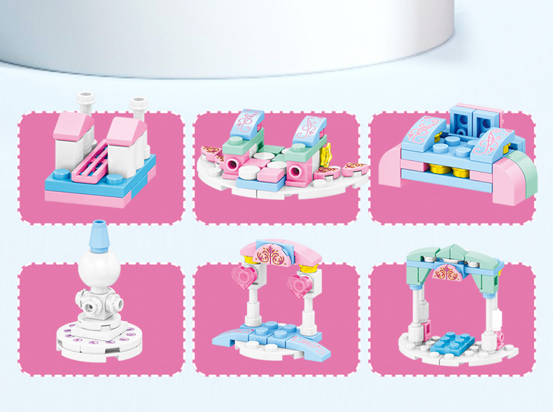 Bộ Đồ chơi lắp ghép Lâu đài công chúa khuyến khích trẻ vui chơi sáng tạo, bé có thể lắp thành một mô hình Lâu đài to, kèm với các mẫu nhà nhỏ khác nhau. Các chi tiết nhỏ kèm theo như trái tim, trụ tháp, bậc cầu thang….. kèm theo lâu đài sẽ kích thích sự khám phá của bé khi chơi