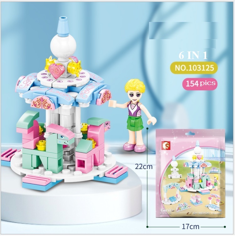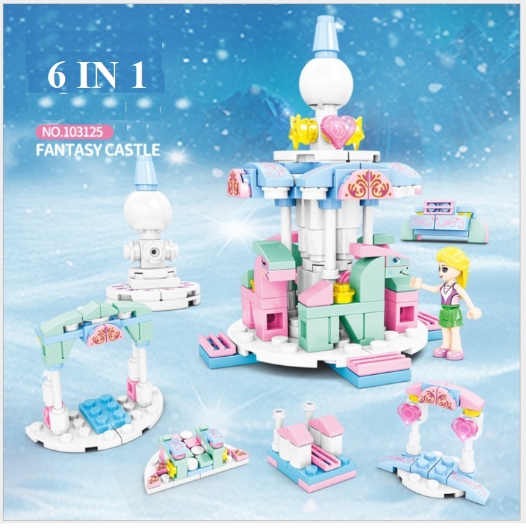 Đồ chơi lắp ghép xếp hình Lâu đài công chúa cao tầng 6 in 1 với 154 mảnh ghép, mẫu lâu đài lớn và nhiều chi tiết cho bé
