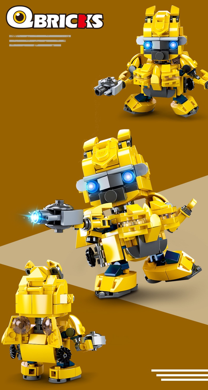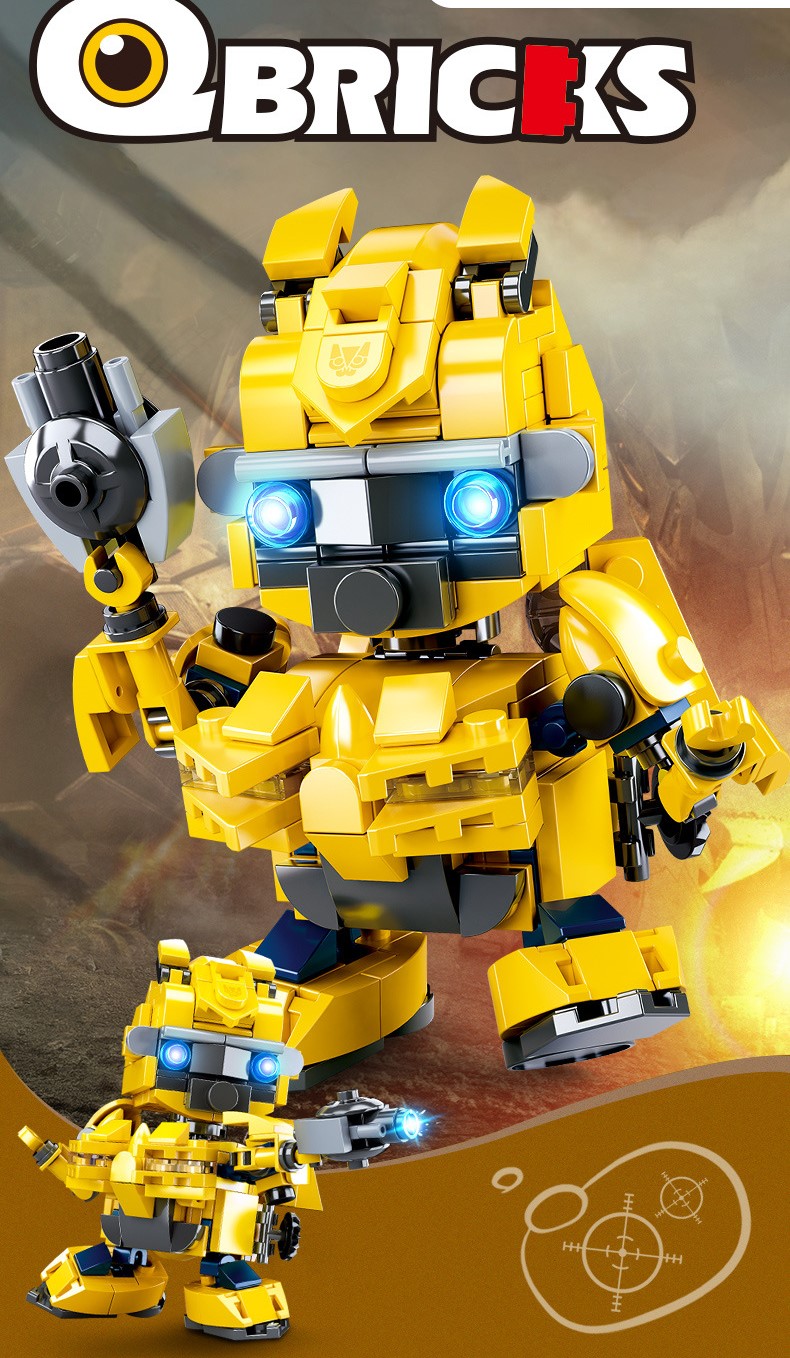 Đồ chơi lắp ghép xếp hình Lego xếp hình robot biến hình Bumbelee vàng khuyến khích trẻ vui chơi sáng tạo, bé có thể lắp thành một mô hình robot siêu to, kèm với các chi tiết nhỏ khác nhau như kiếm, di chuyển đầu và khớp tay khác nhau. Các chi tiết nhỏ kèm theo như kiếm, khớp, đầu robot….. kèm theo robot sẽ kích thích sự khám phá của bé khi chơi