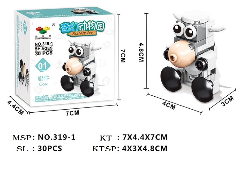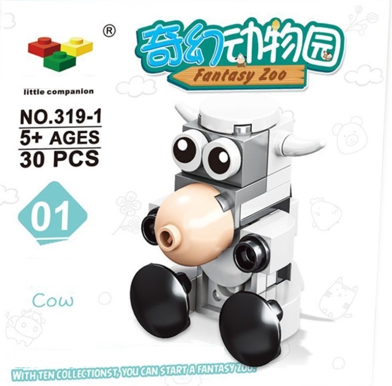 Đồ chơi lắp ghép xếp hình Chú bò sữa FANTASY ZOO với 31 PICS bằng nhựa an toàn cho bé