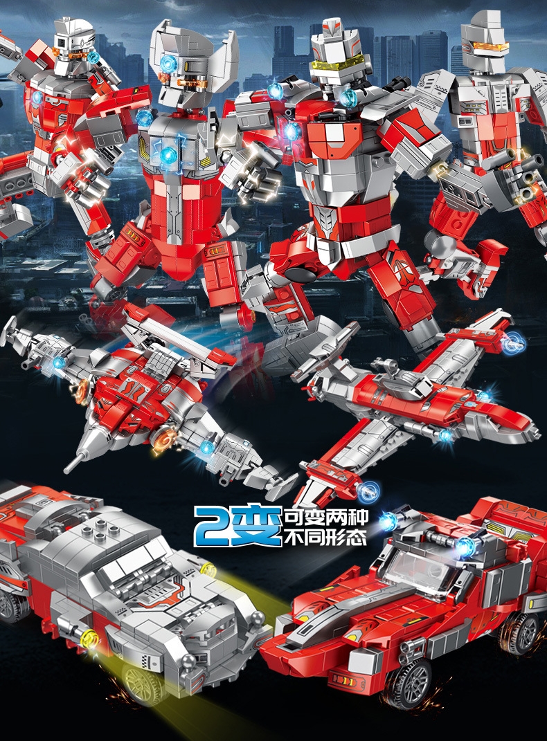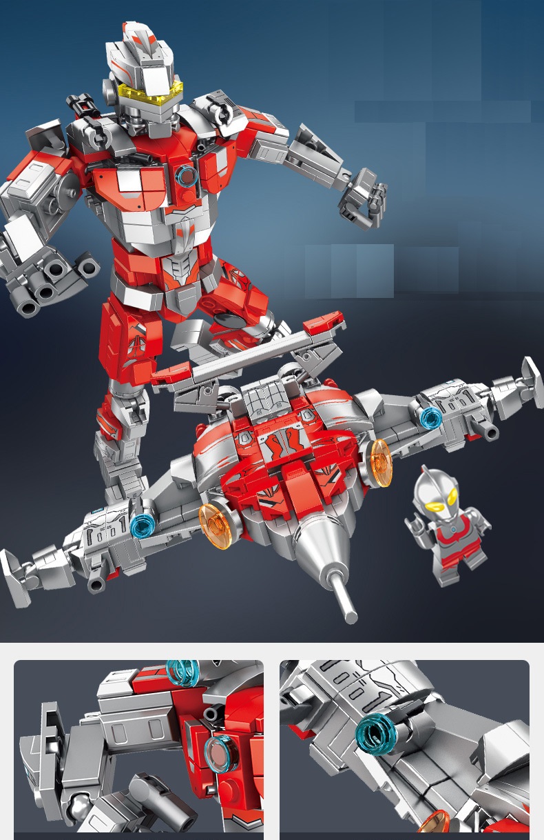 Đồ chơi lắp ghép xếp hình robot Ultraman biến hình máy bay với 430 mảnh ghép