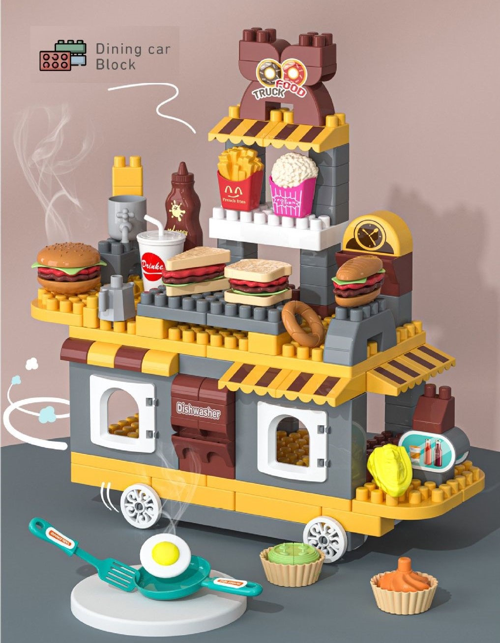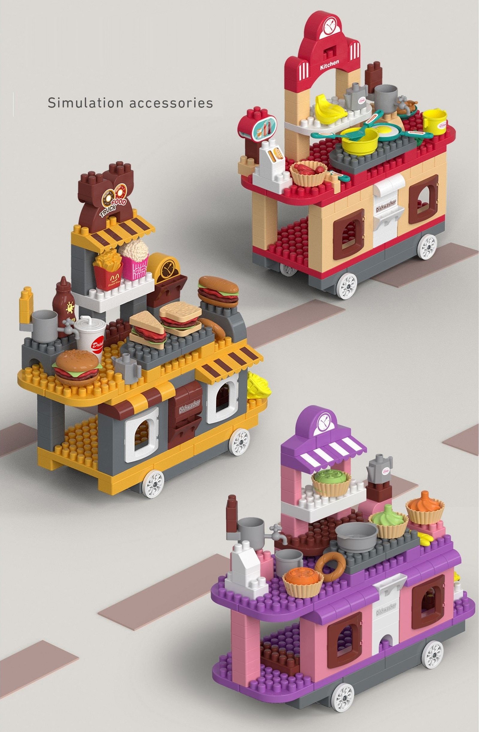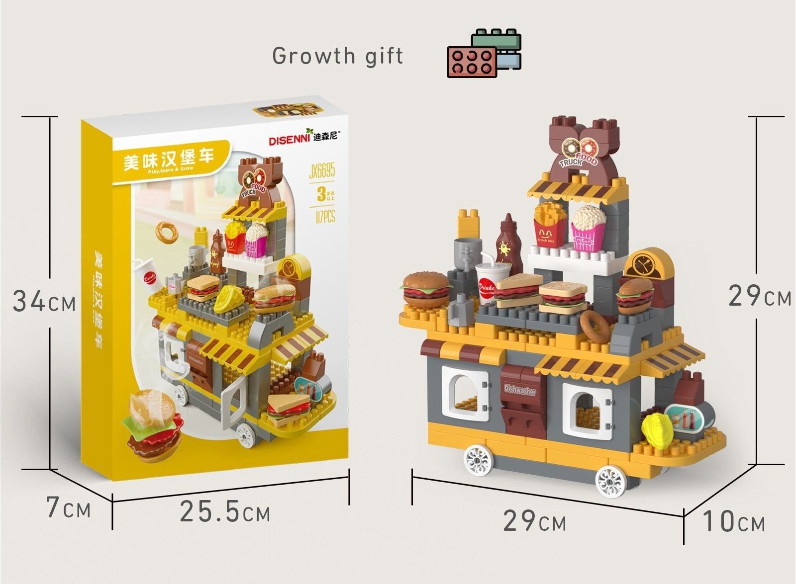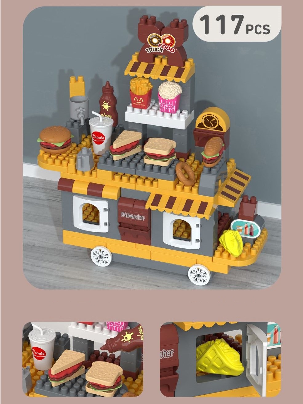 Đồ chơi lắp ghép xếp hình xe bán Hamburger kèm dụng cụ nấu ăn và nhiều mẫu bánh với 117 pics
