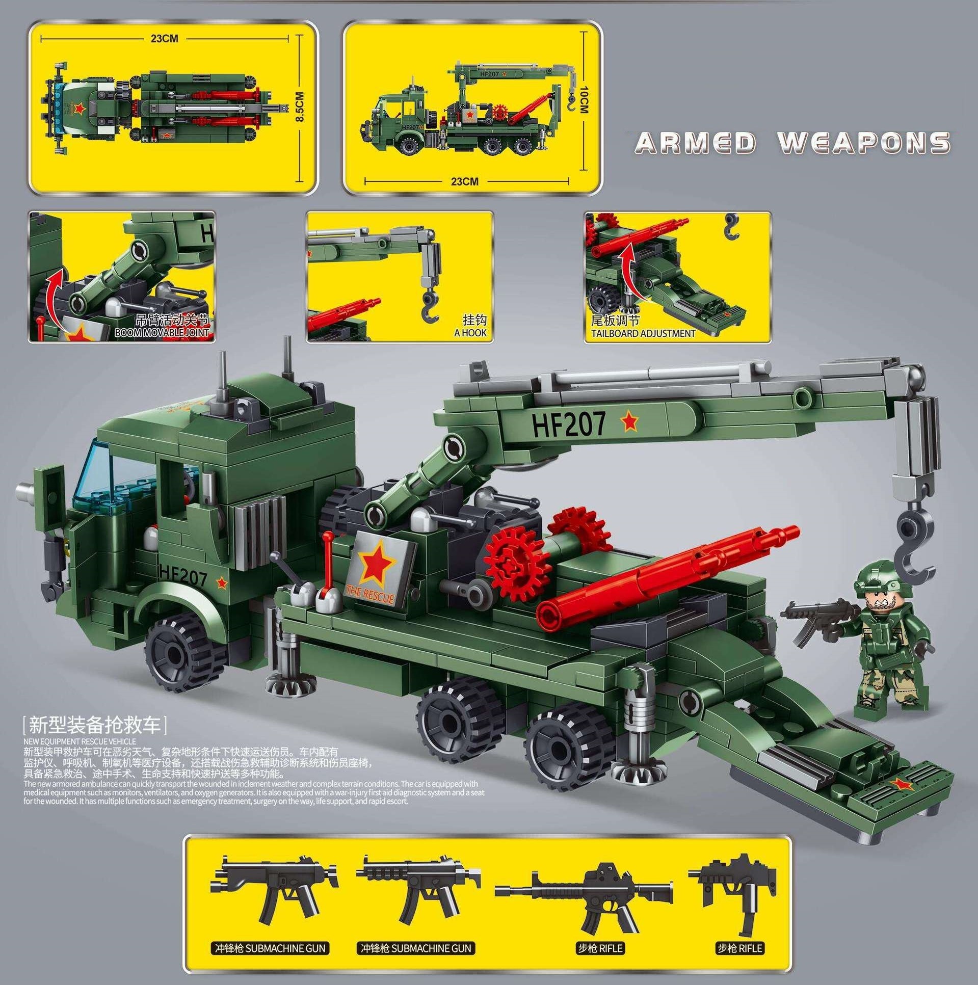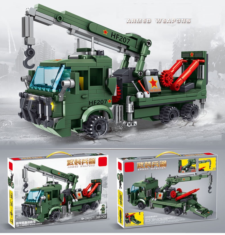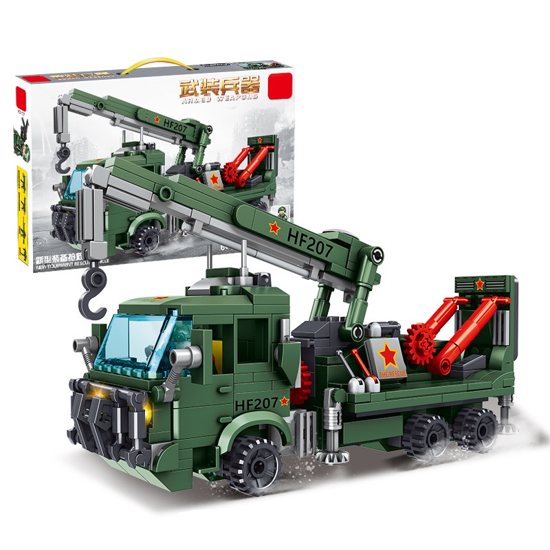 Lắp ghép xếp hình xe cẩu kéo công trình màu xanh lá với 388 mảnh ghép cho bé
