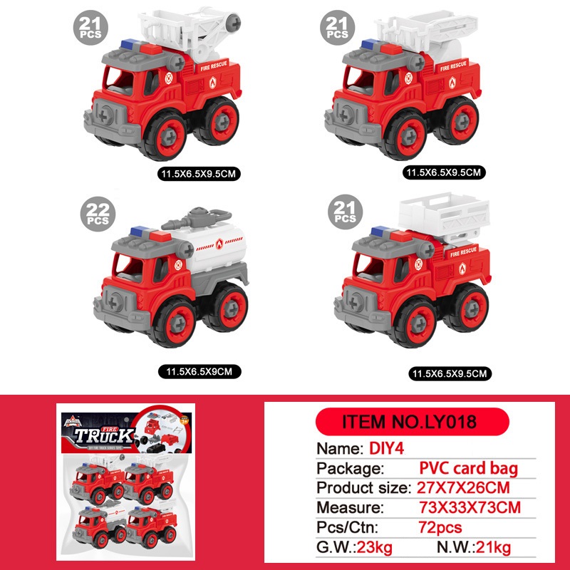 Túi đồ chơi xe lắp ráp, mẫu 4 xe cứu hỏa cho bé: